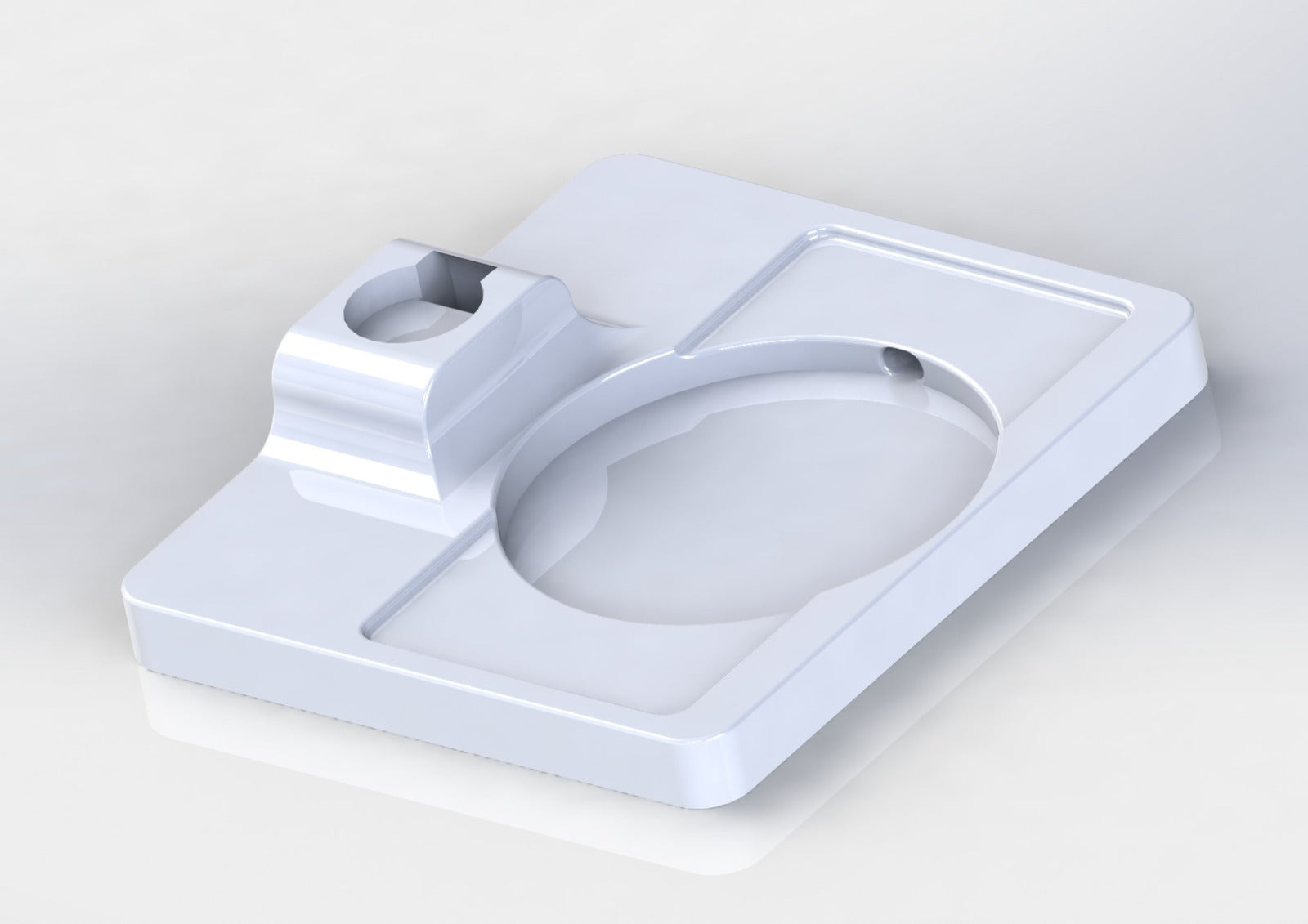 Dieses Produkt kann als Dockingstation für das Apple Watch-Ladegerät in Kombination mit einem kabellosen Qi-Ladegerät verwendet werden. Es unterstützt Ladegeräte mit einem Durchmesser von bis zu 100 mm und ist mit integrierten Kabelführungen ausgestattet. Aufgrund des Überstandes im Kabelführungsbereich muss der Druck mit Auflage erfolgen.