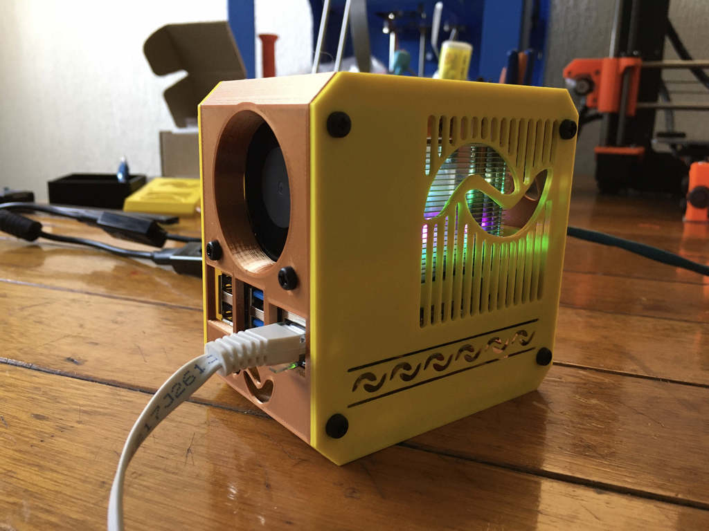 - Designet specifikt som et kabinet til Raspberry Pi 4.