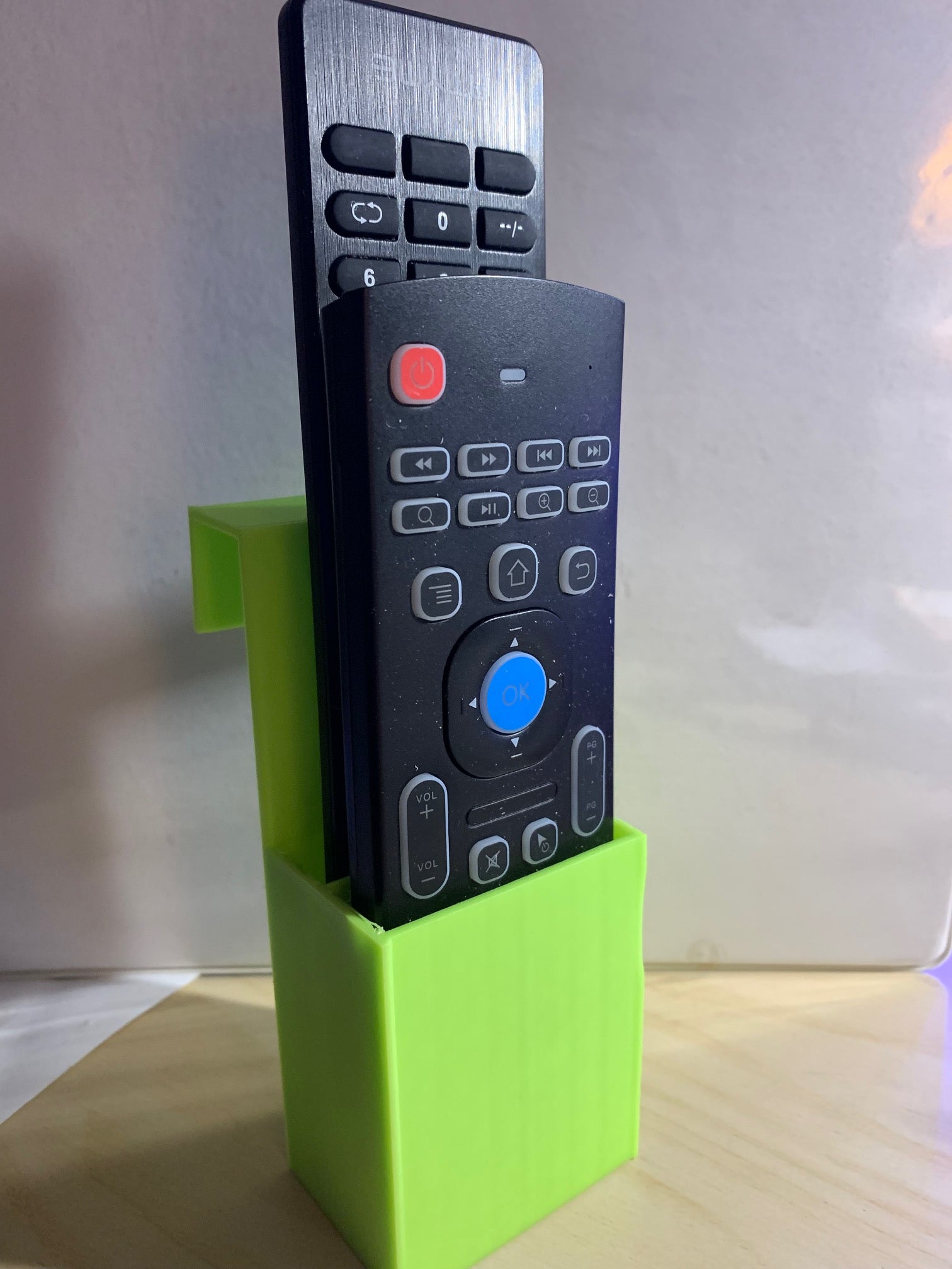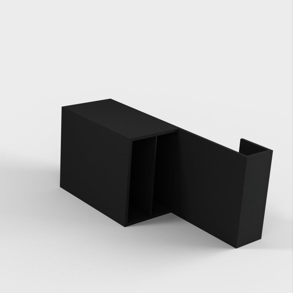 Ein Fernbedienungshalter zur einfachen und bequemen Aufbewahrung Ihrer Fernbedienung. Die Halterung kann an jedem beliebigen Ort in Ihrem Zuhause platziert werden, sodass Sie Ihre Fernbedienungen immer griffbereit haben. Perfekt, um den Überblick über Ihre Geräte zu behalten und Ihr Zuhause aufgeräumt zu halten.