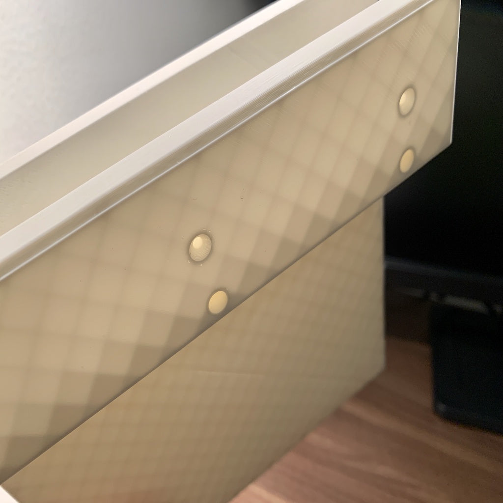 Es besteht aus zwei Teilen, Sie können es zusammenkleben oder einfach ein paar Schrauben verwenden. Version 2 ist jetzt robuster, sodass Ihr Nachttisch noch länger hält.