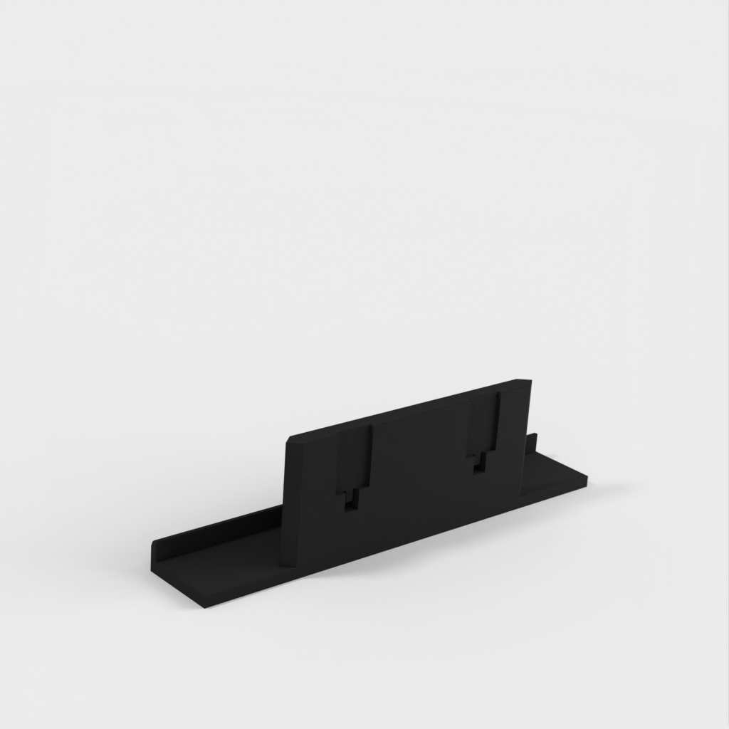 Robuste Wandhalterung für iPad 1 und 2, ideal für Ihre FHEM-Heizungssteuerung. Durch die einfache und sichere Anbringung an der Wand haben Sie stets Zugriff auf Ihre Heizungssteuerung. Durch Hochschieben lässt sich das iPad schnell und einfach aus der Halterung entfernen. Zur Montage werden Loom Bands in der Farbe Grün verwendet.
