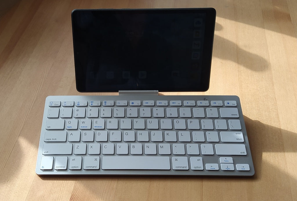 Tablet-Tastaturhalter für Lenovo M8-Tablet und günstige BK 3001 BT-Tastatur. Dieser Halter sorgt für ein komfortables und praktisches Tipperlebnis, indem er Tablet und Tastatur an ein und derselben Stelle hält. Ideal für Arbeit, Studium oder Unterhaltung.
