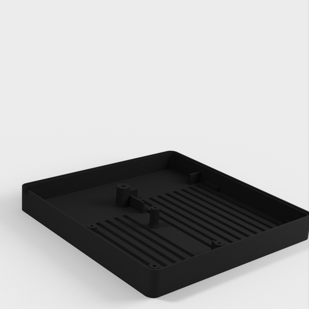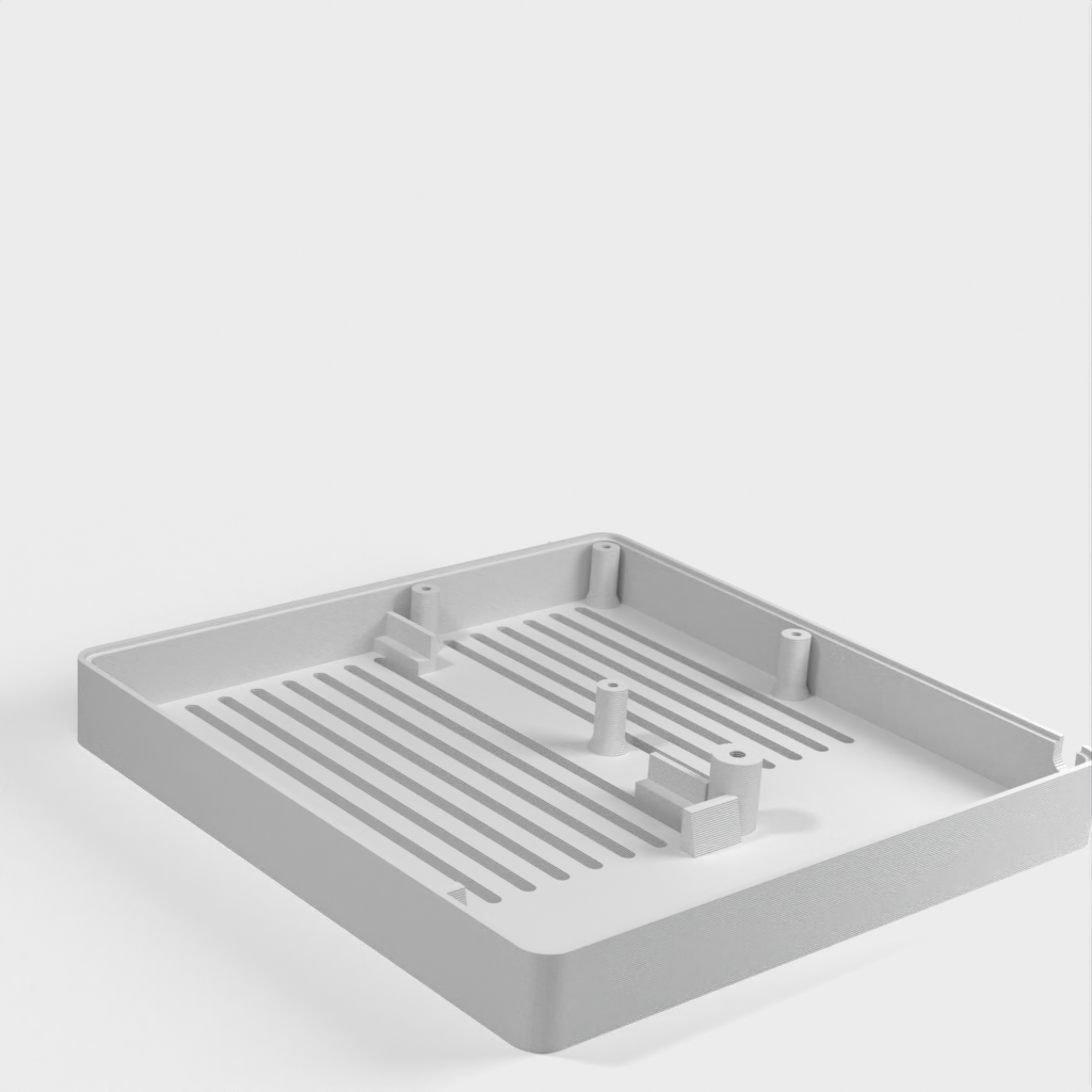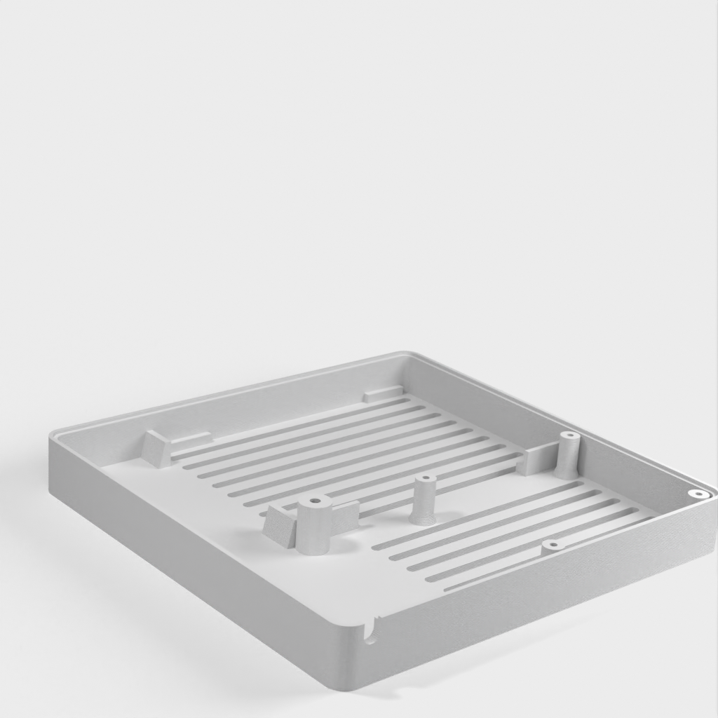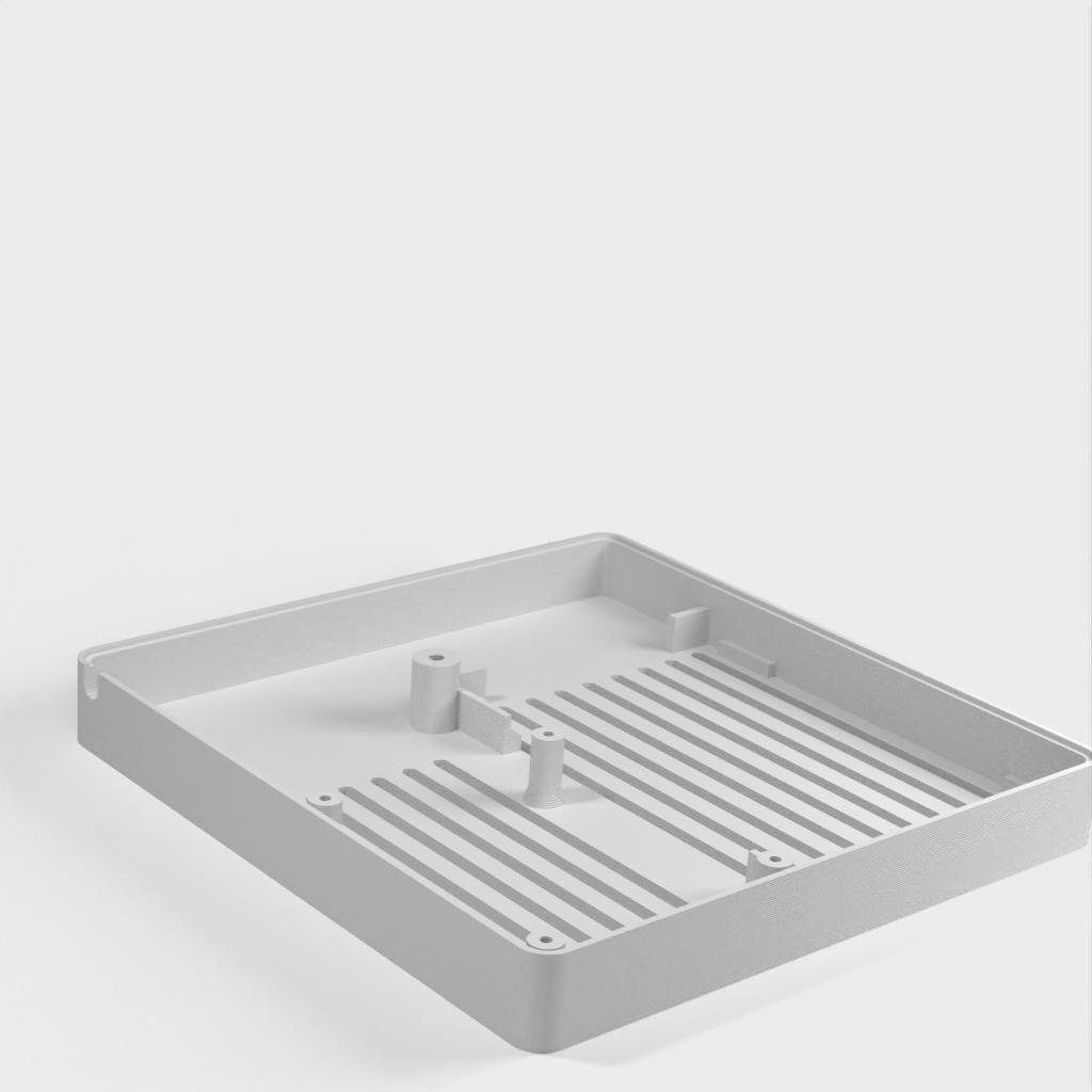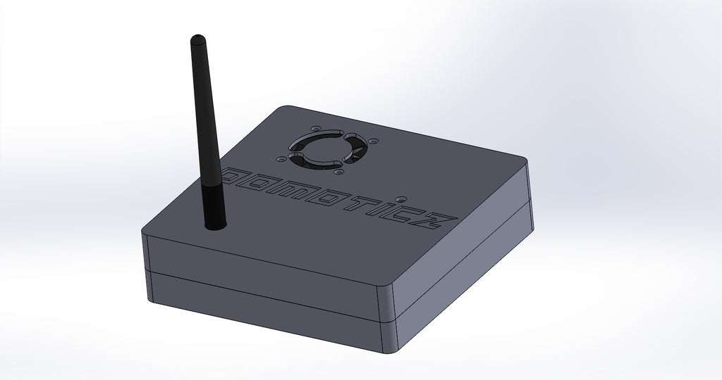 Persönliche Box für Domoticz mit Raspberry Pi, Pi Drive, RFX.com, Aeon Stick Z Wave. Auf der oberen Abdeckung muss ein 40-mm-Lüfter montiert werden. Denken Sie daran, Kissen unter die Box zu legen, um eine optimale Kühlung zu gewährleisten. Nach technischen Zeichnungen wurden Änderungen vorgenommen, darunter die Änderung der Position der Raspberry-Löcher und die Erhöhung des Raspberry-Tisches. Ein Teil der oberen Abdeckung wurde dünner gestaltet, um eine Visualisierung des LED-Status durch transparentes Material zu ermöglichen.