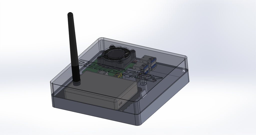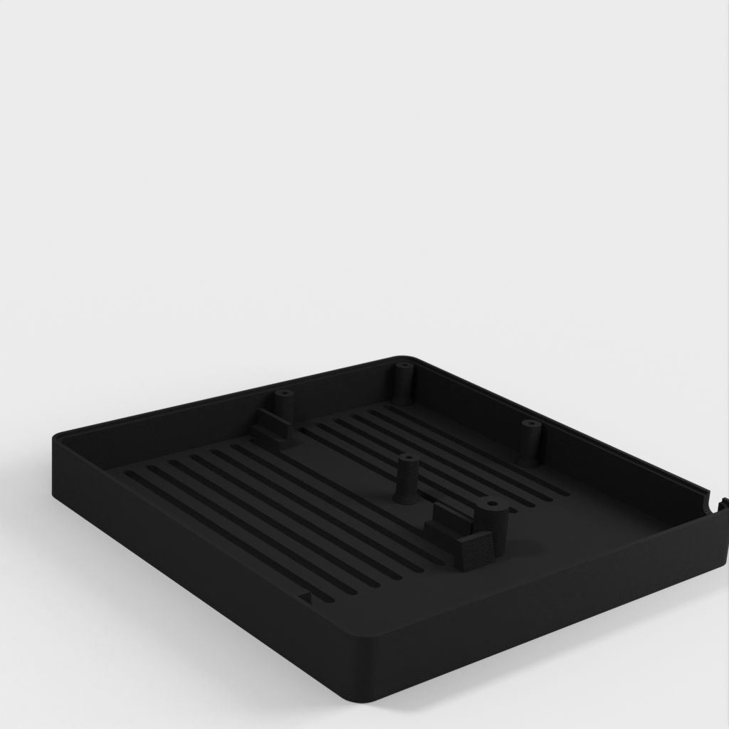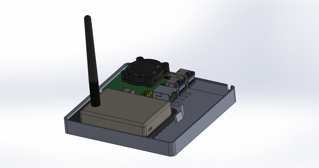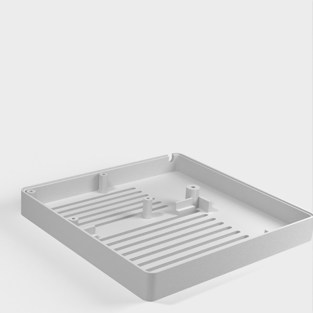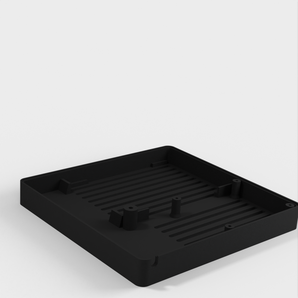 Persönliche Box für Domoticz mit Raspberry Pi, Pi Drive, RFX.com, Aeon Stick Z Wave. Auf der oberen Abdeckung muss ein 40-mm-Lüfter montiert werden. Denken Sie daran, Kissen unter die Box zu legen, um eine optimale Kühlung zu gewährleisten. Nach technischen Zeichnungen wurden Änderungen vorgenommen, darunter die Änderung der Position der Raspberry-Löcher und die Erhöhung des Raspberry-Tisches. Ein Teil der oberen Abdeckung wurde dünner gestaltet, um eine Visualisierung des LED-Status durch transparentes Material zu ermöglichen.