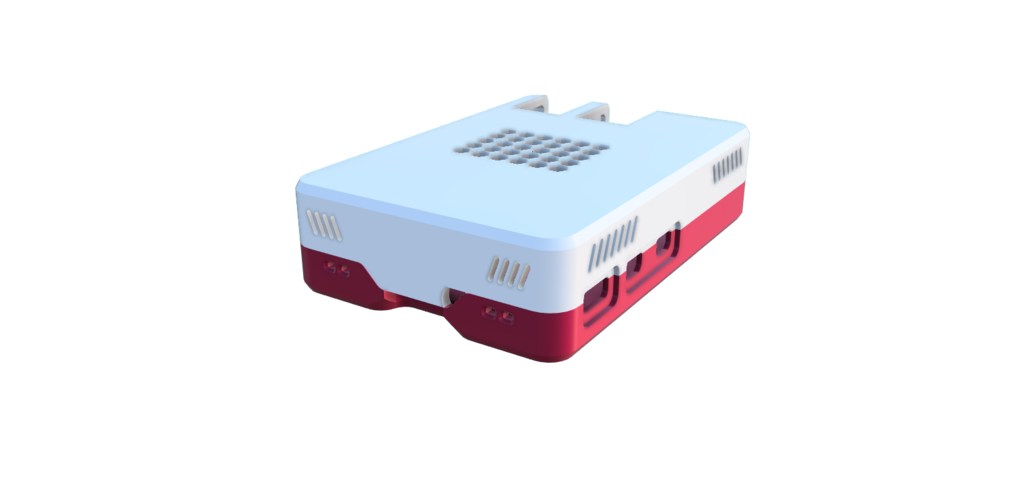 Raspberry Pi 5 Gehäuse mit Lüftungslöchern und neuem USB/LAN-Layout