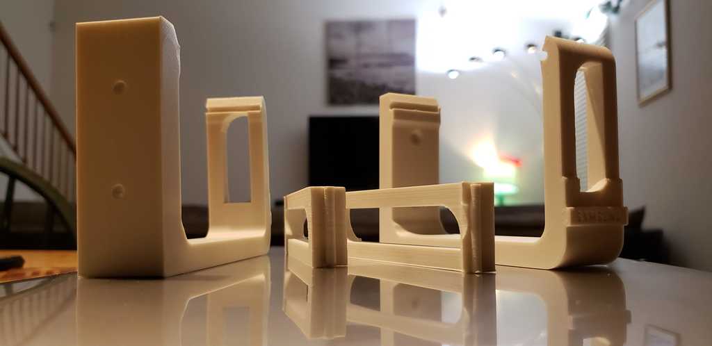 Diese ausgereifte Halterung kann bis zu 11 Pfund (pro Halterungspaar) tragen. Es kann entweder als einzelne Einheit oder in zwei Teilen (Oberrahmen und Wandmontage) auf der linken und rechten Seite gedruckt werden. Wenn Ihre Soundbar 11 Pfund oder weniger wiegt und eine Tiefe von 100,50 mm oder weniger sowie eine Höhe von 65,50 mm oder weniger hat, dann könnte dies Ihre sein. Es wurde speziell für die Samsung Sound Bar entwickelt und eignet sich ideal für Heimkinosysteme.