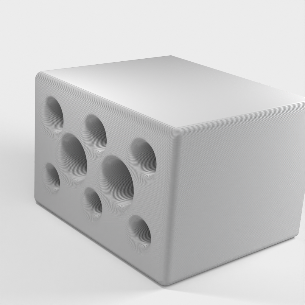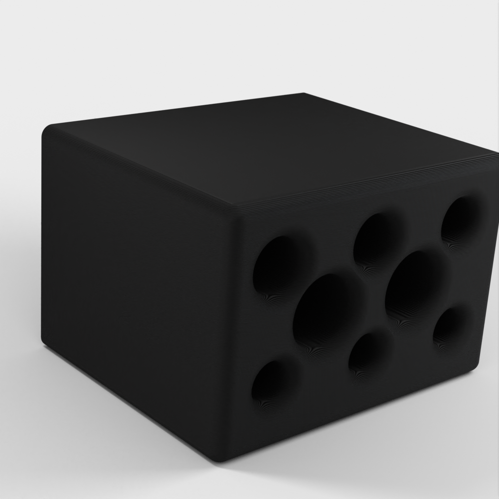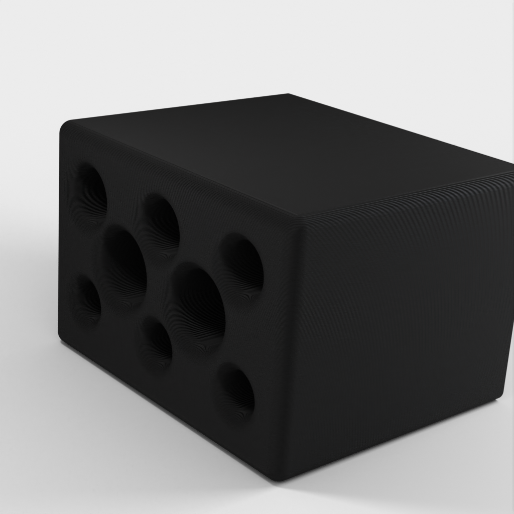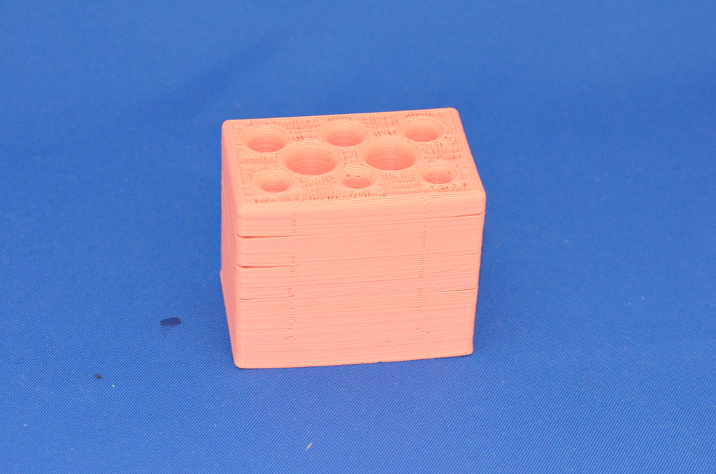 Ein Halter für Stifte, Bleistifte und jedes andere Schreibmaterial. Es hat acht verschiedene Löcher, 3 für Bleistifte, 3 für Kugelschreiber und 2 für verschiedene Dinge wie z Bleistiftspäne. Es besteht aus rosafarbenem Kunststoff und ist vollständig tragbar.