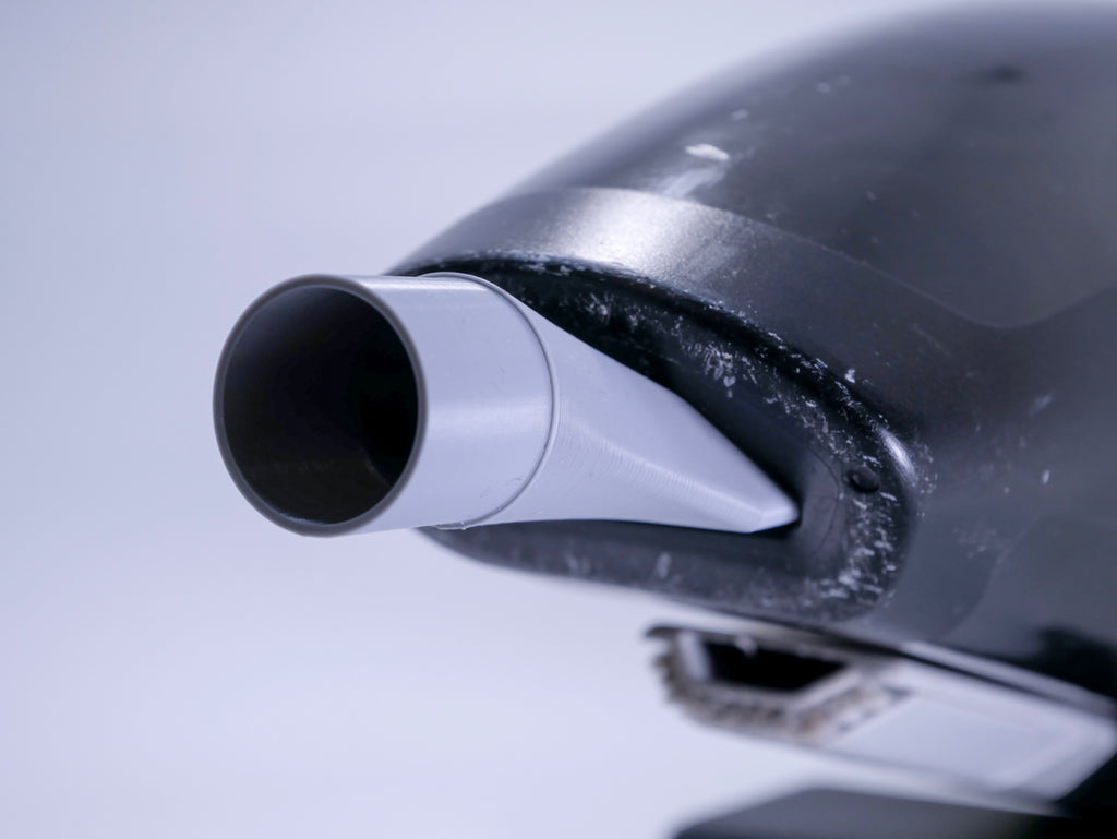 Adapter für einen Ryobi ONE+ Akku-Staubsauger, damit dieser mit dem Schlauch des Ryobi 18V ONE+ Kompressors auch schwer zugängliche Stellen erreichen kann.