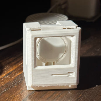 Diese Ladestation mit ihrem kultigen Macintosh-Design aus den 80ern verleiht Ihrem Schreibtisch oder Nachttisch einen Hauch von Retro-Charme. Sie wurde speziell zum Halten und Laden Ihrer 42-mm-Apple Watch entwickelt und gewährleistet einen sicheren und stabilen Stand während des Ladevorgangs.