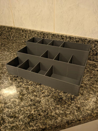 Dies ist ein Badezimmer-Organizer mit zwei verschiedenen Gestaltungsmöglichkeiten.