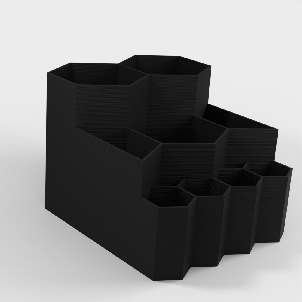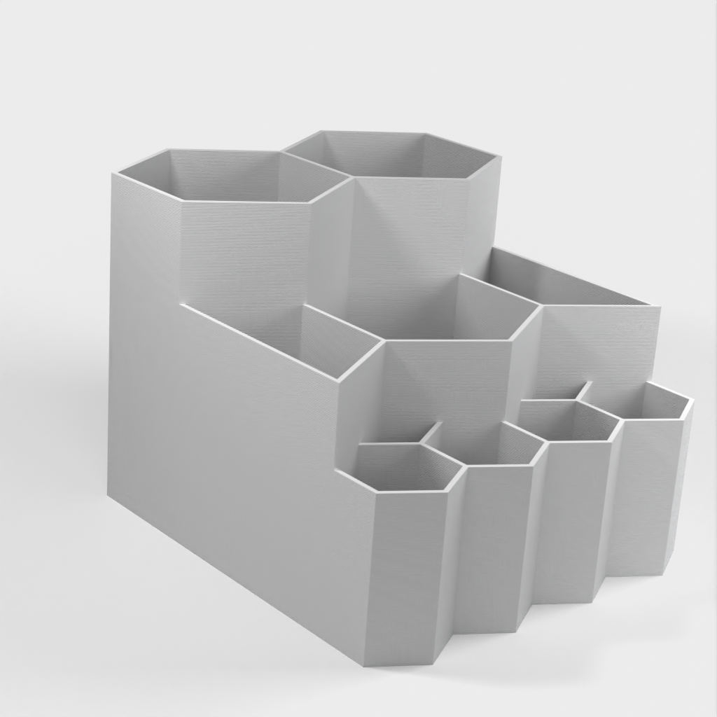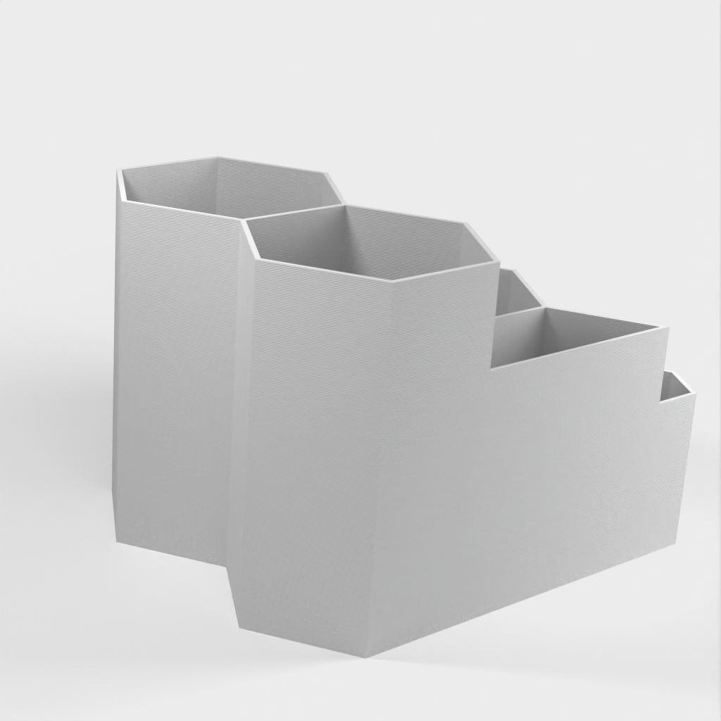 Der Organizer ist kompakt, aber stabil und erfordert weniger Material und weniger Zeit zum Drucken. Ein perfektes Accessoire, um Ihren Schreibtisch organisiert und aufgeräumt zu halten.