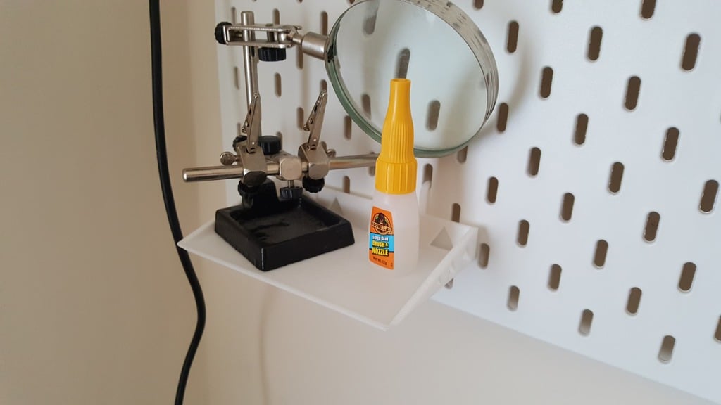 Ein Regal- und Regalhakenpaket für das IKEA SKÅDIS Stecktafelsystem. Die Haken sind so konzipiert, dass sie entfernt werden können. Für zusätzliche Sicherheit wird jedoch empfohlen, sie festzukleben. Mit diesem Paket können Sie Ihre Artikel einfach, effizient und sicher organisieren und aufbewahren.