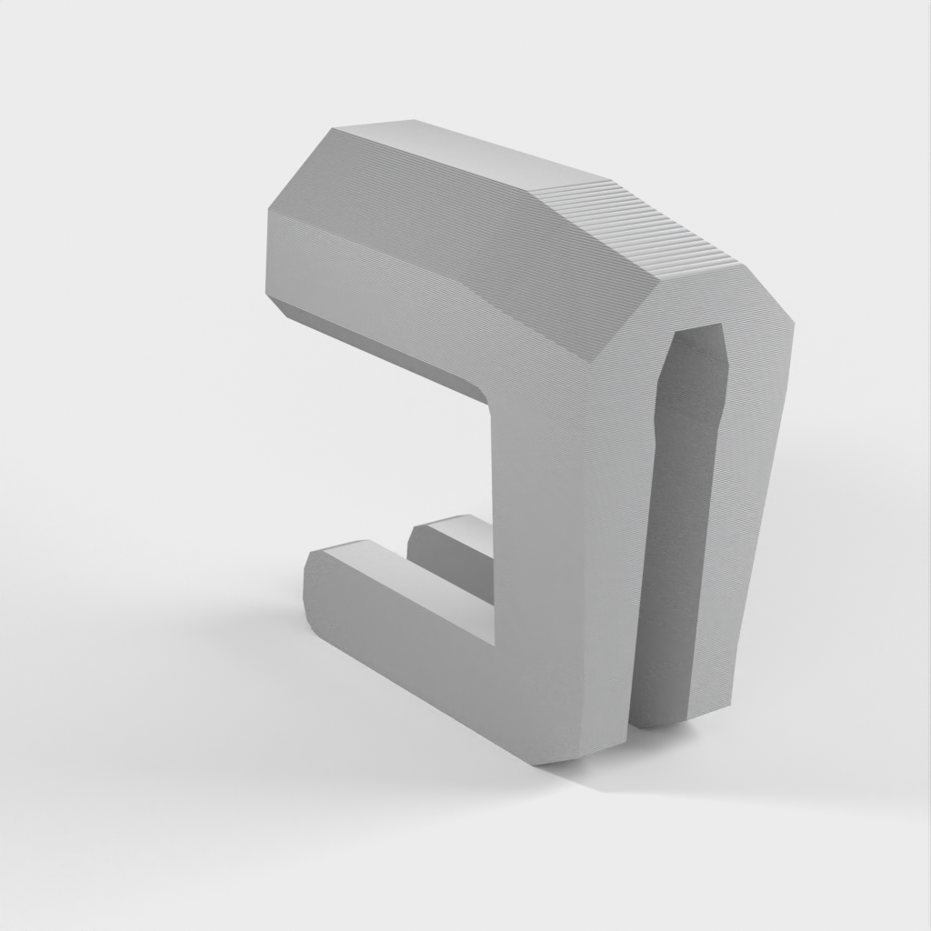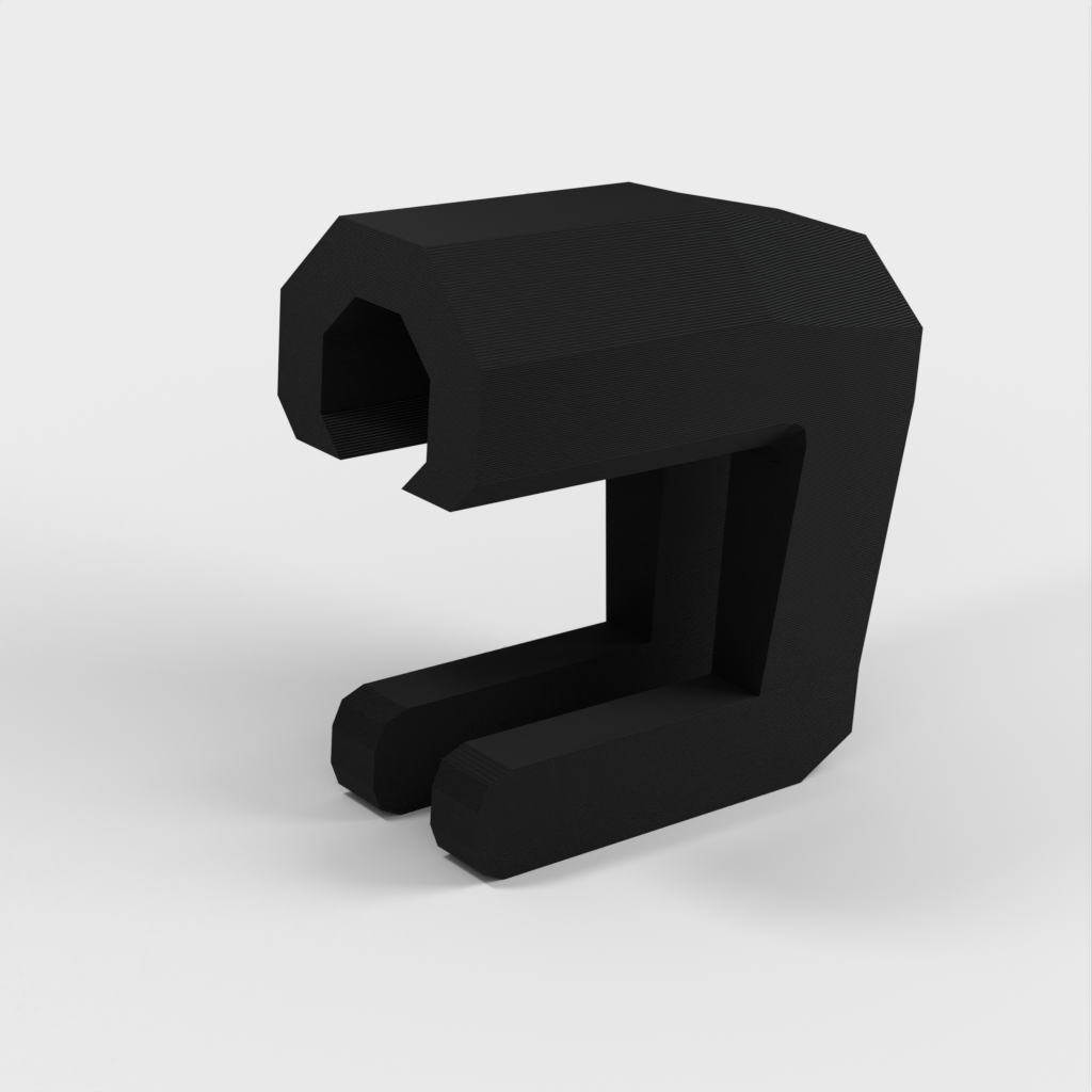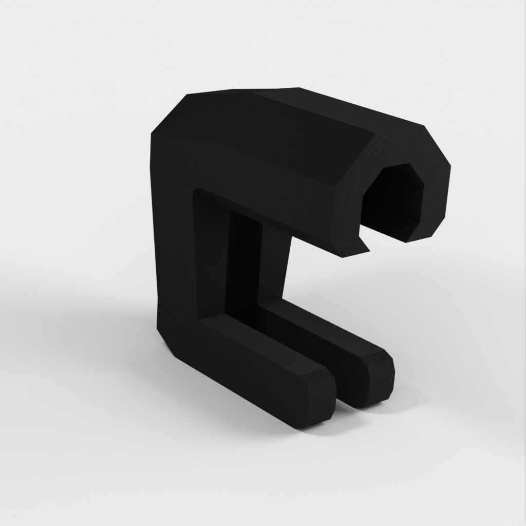 Ein einfacher Kabelhalter, passend zum IKEA BEKANT-Tisch. Mit diesem Halter können Sie die Kabel Ihres Headsets, Ihrer Maus und Ihrer Tastatur verwalten und sie sicher und organisiert aufbewahren. Perfekt für jede Wohn- oder Büroumgebung, in der Kabel schmutzig werden oder auf den Boden fallen können. Dieses Produkt ist für Tische mit einer Dicke von 1,6 cm gedacht.