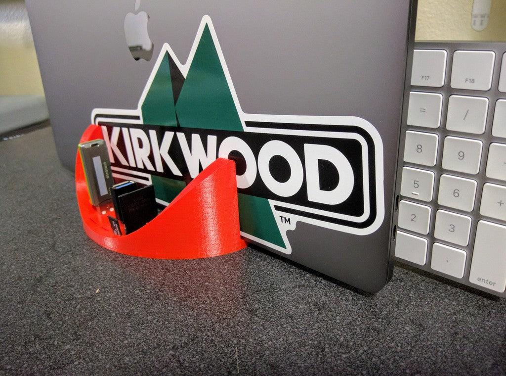 Mit dedizierten Steckplätzen für eine Tastatur der Marke Apple, zwei USB-A-Geräte (z. B. USB-Sticks), zwei USB-C-Adapter, eine SD-Karte und drei Micro-SD-Karten trägt diese Lösung zu einem besser organisierten und funktionaleren Arbeitsplatz bei, indem sie wichtige Zubehörteile an einem Ort zusammenführt.
