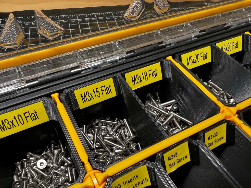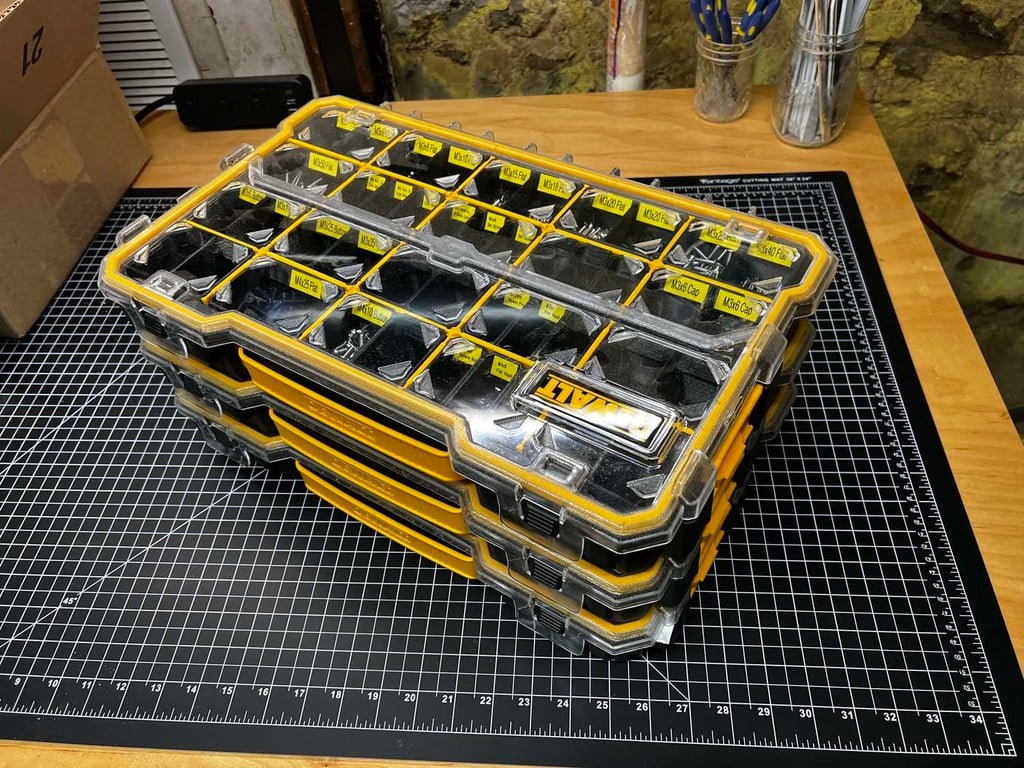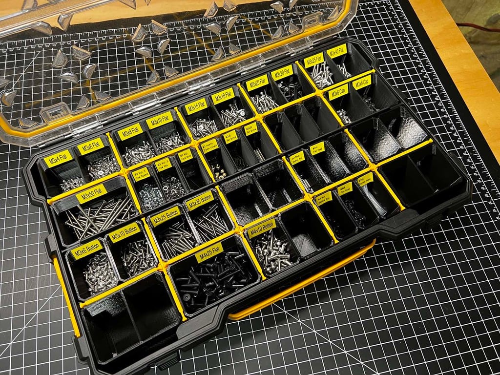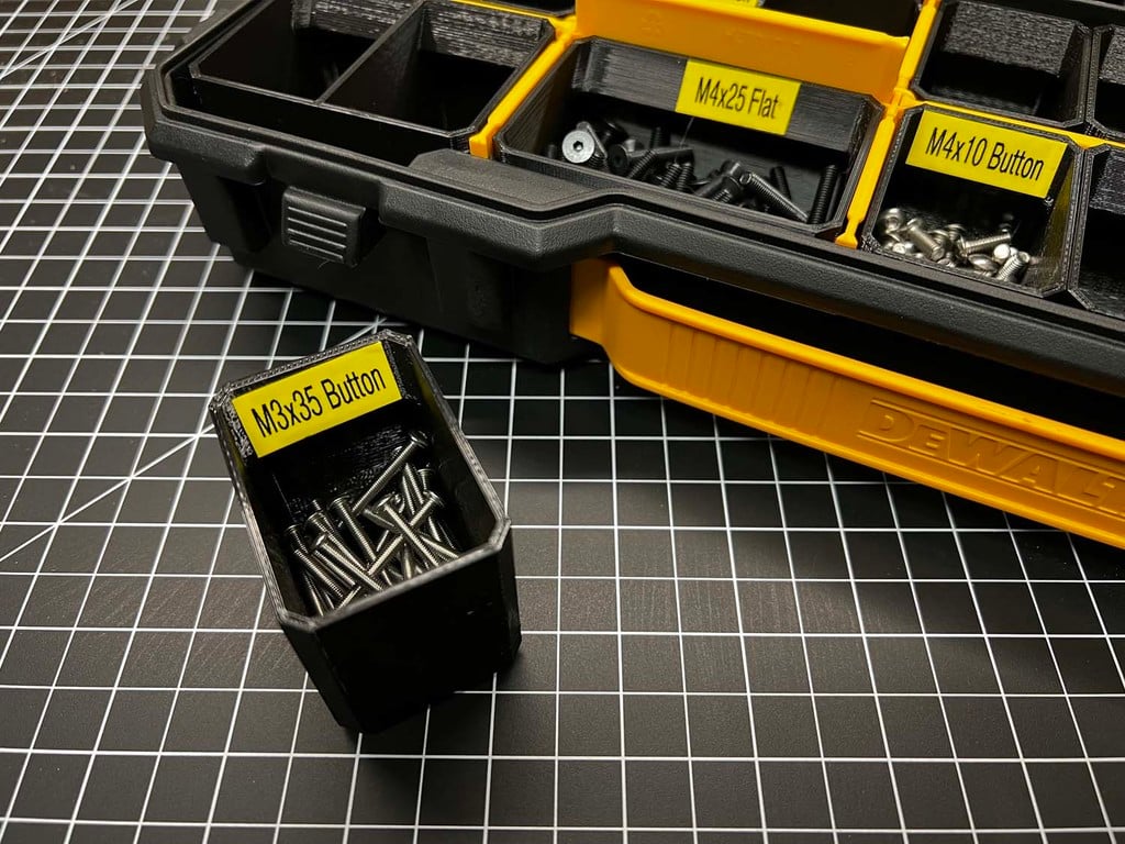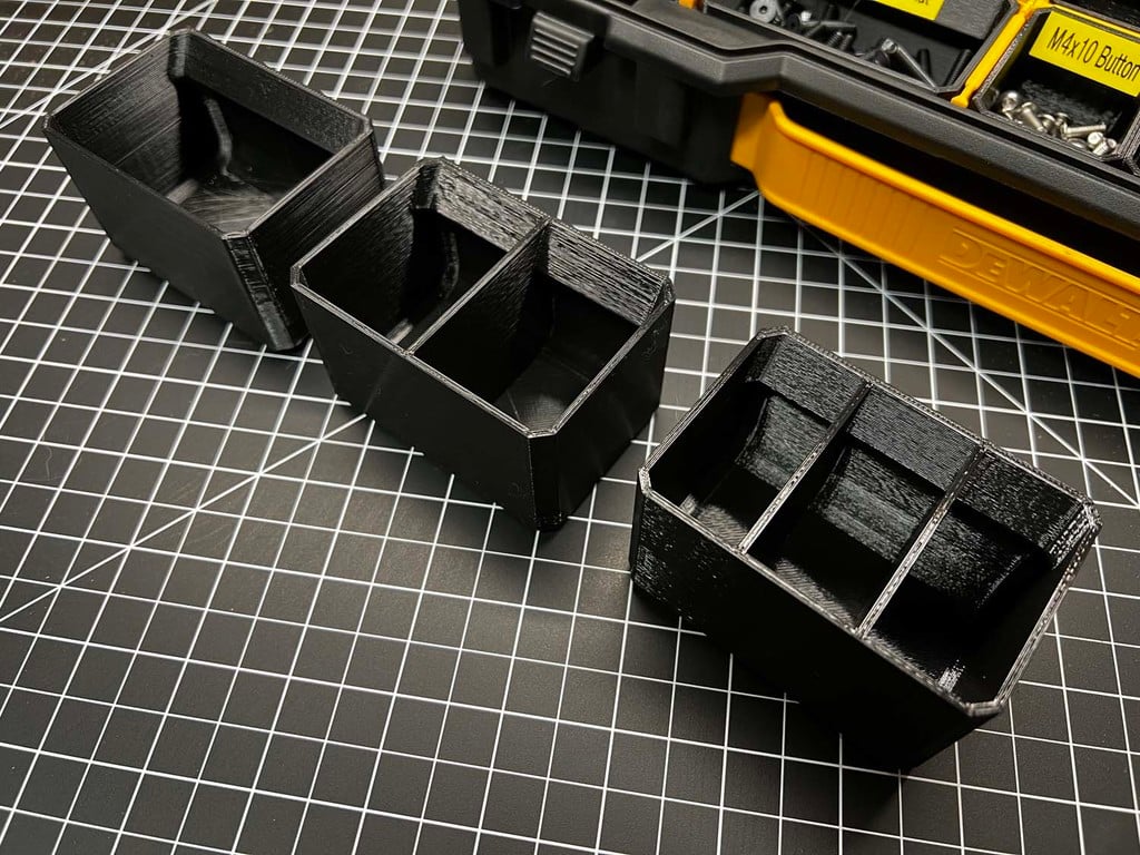 Diese modularen Aufbewahrungsboxen wurden entwickelt, um die Organisation von Kleinteilen in Ihrer Werkstatt zu optimieren. Sie sind speziell für den Pro Small Parts Organizer von DeWalt mit 10 oder 20 Fächern konzipiert, wo sie Ihre Lagerkapazität für Schrauben, Bolzen und andere Kleinteile um das Zwei- bis Dreifache erhöhen können.