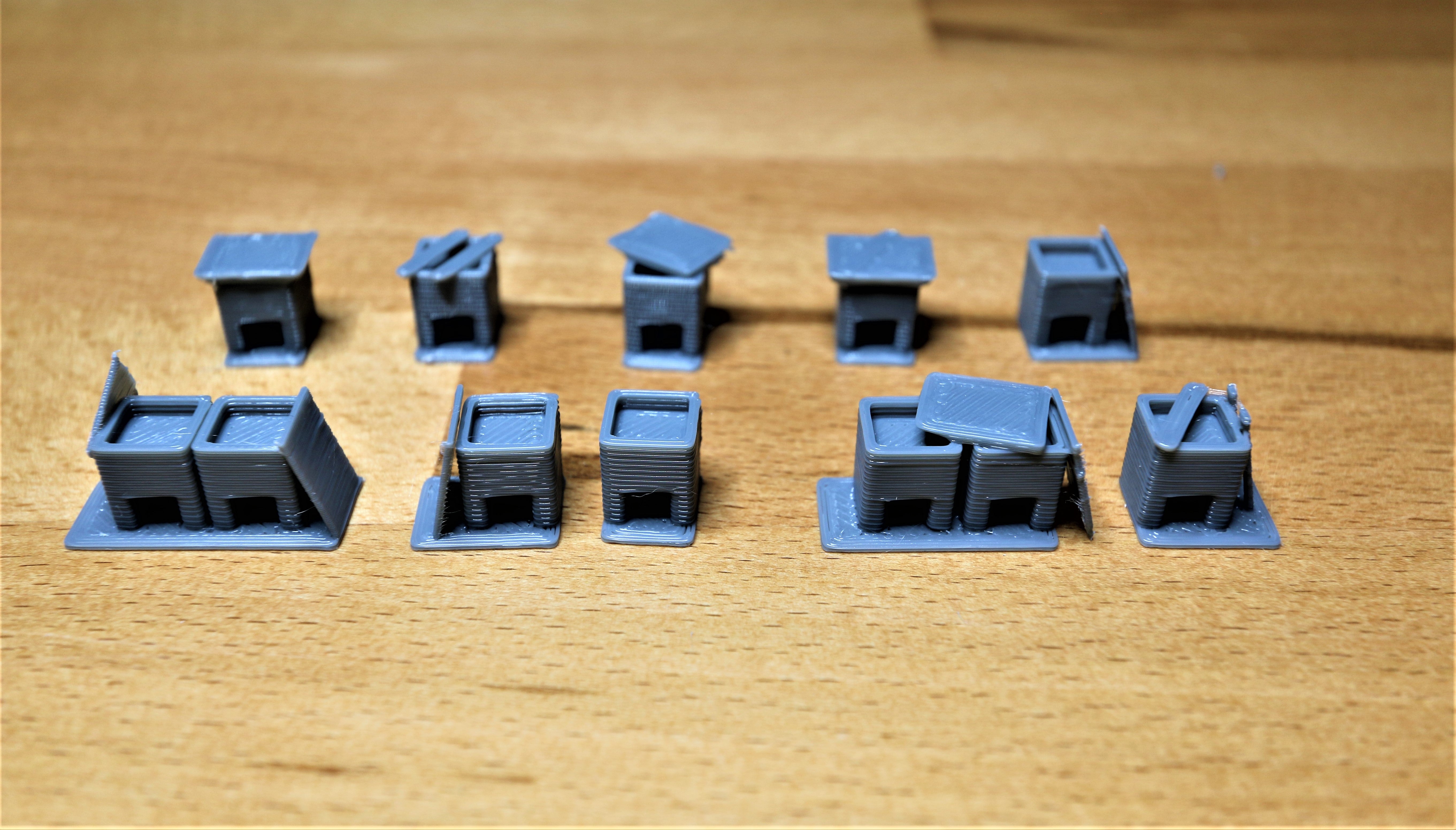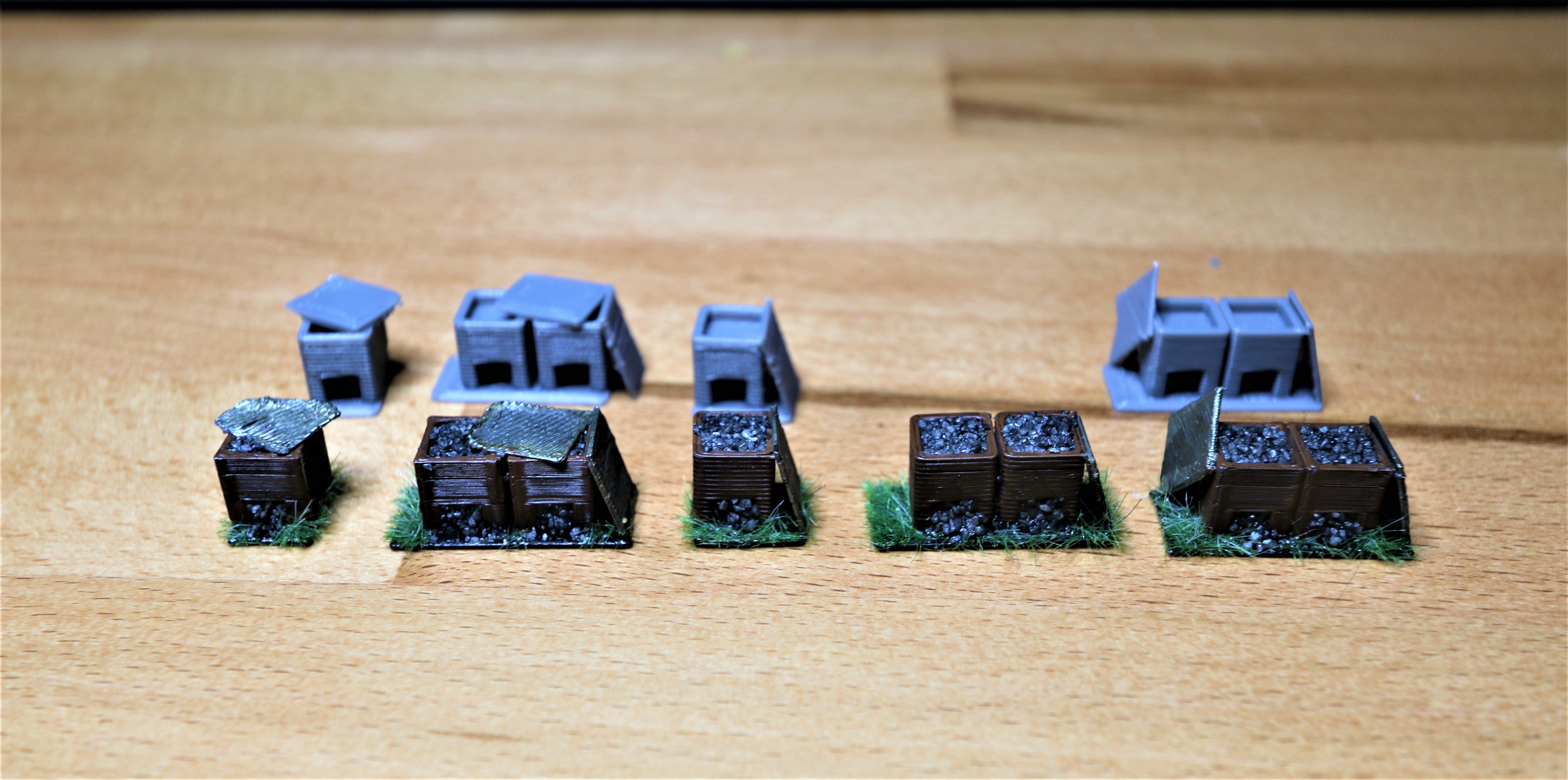 Das Set umfasst 10 verschiedene Designs und bietet Ihnen damit große Flexibilität bei der Gestaltung Ihres Modelluniversums. Von geschlossenen Behältern über Kisten mit offenem Deckel bis hin zu gestapelten Holzbalken – jede Variante erzählt eine einzigartige Geschichte auf Ihrer Modellanlage. Durch Bemalung und realistisches Schüttgut können Sie die Kisten optisch noch weiter verschönern und sie so zu einem integralen Bestandteil Ihrer Landschaft machen.