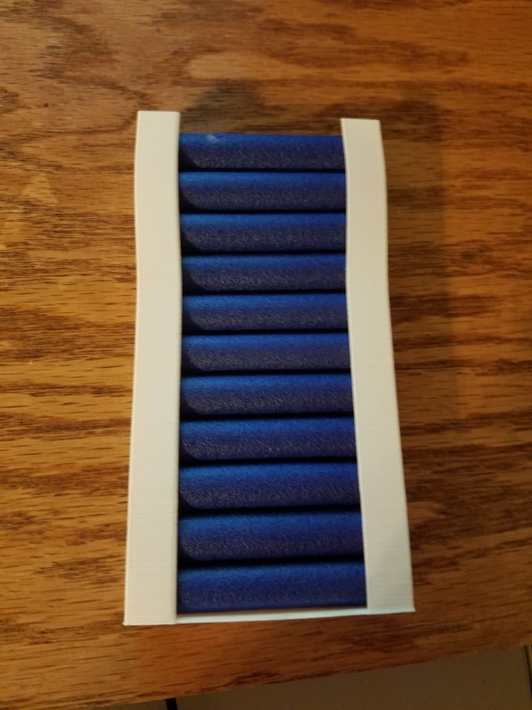 Optimieren Sie die Geschwindigkeit und den Spaß Ihrer Nerf-Matches mit dem Nerf Dart Speed ​​Loader für Standardmagazine. Mit diesem Schnelllader können Sie Standard-Nerf-Magazine mit bis zu 6, 10 oder 12 Discs gleichzeitig nachfüllen. Der Loader ist mit größeren Clipsystemen kompatibel, die Nerf-Angriffsscheiben oder ähnliches verwenden, und kann mithilfe der mitgelieferten CAD-Datei für verschiedene Clipgrößen angepasst werden. Passen Sie den Nerf Dart Speed ​​Loader an Standardmagazine an und machen Sie Ihren nächsten Kampf auf dem Schlachtfeld intensiv und unterhaltsam.