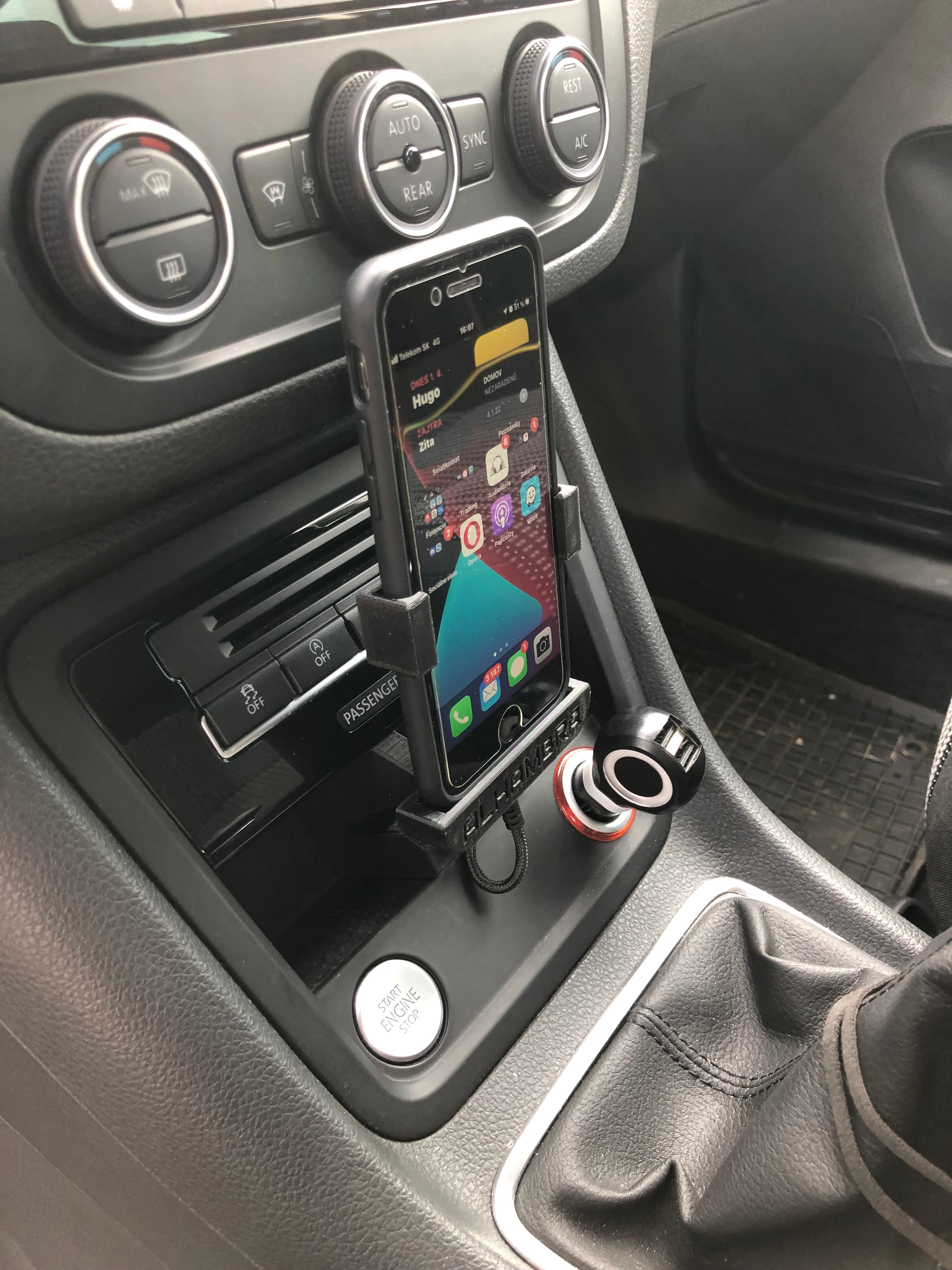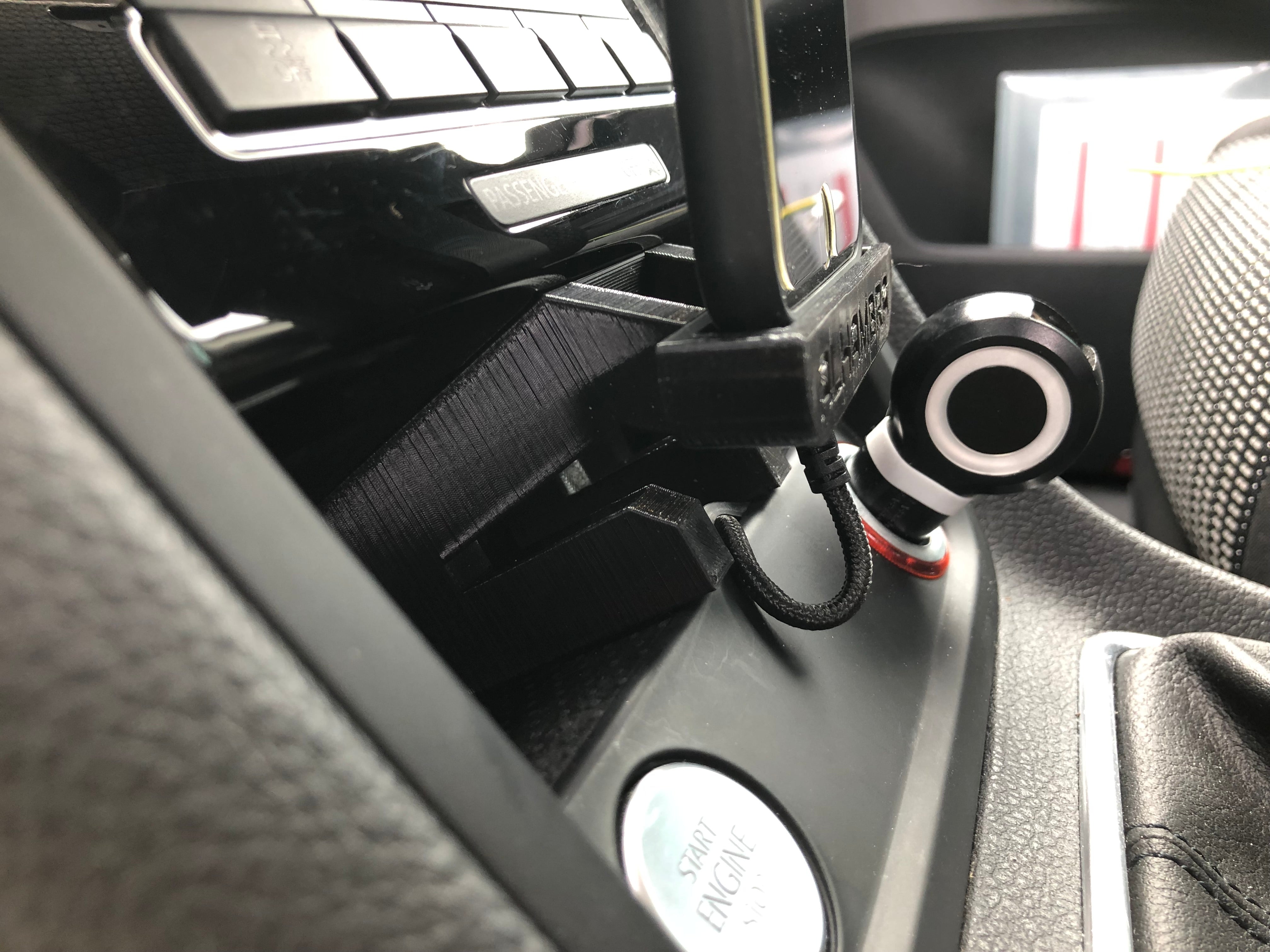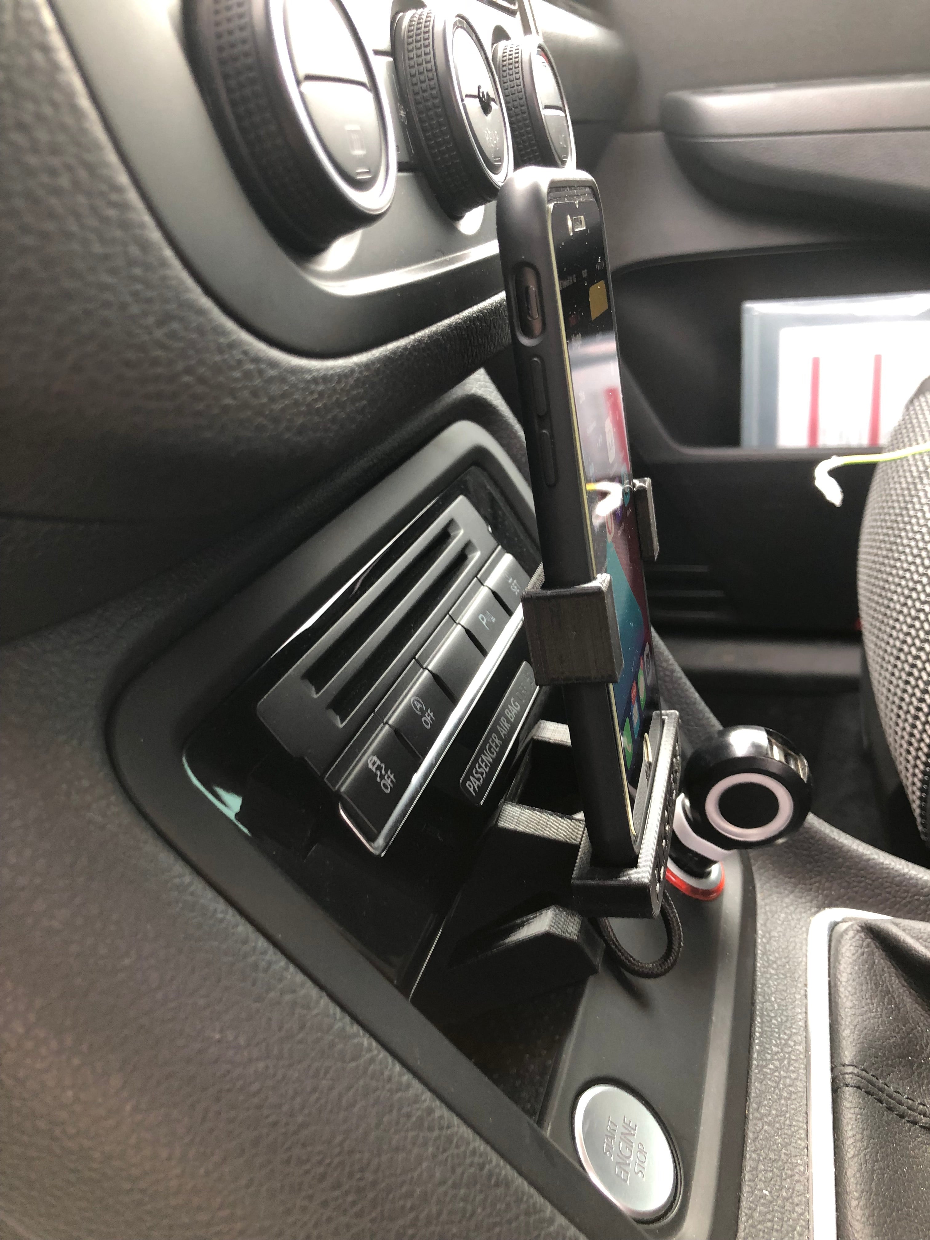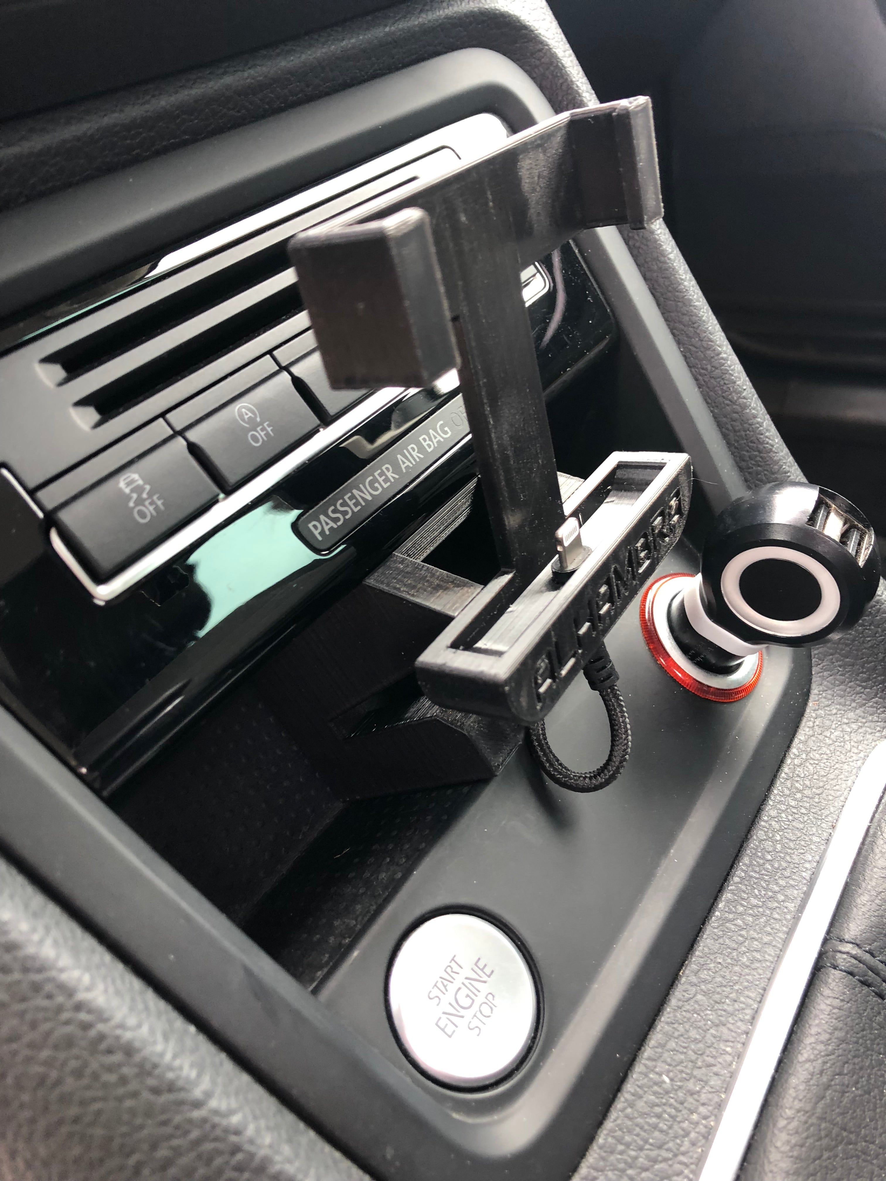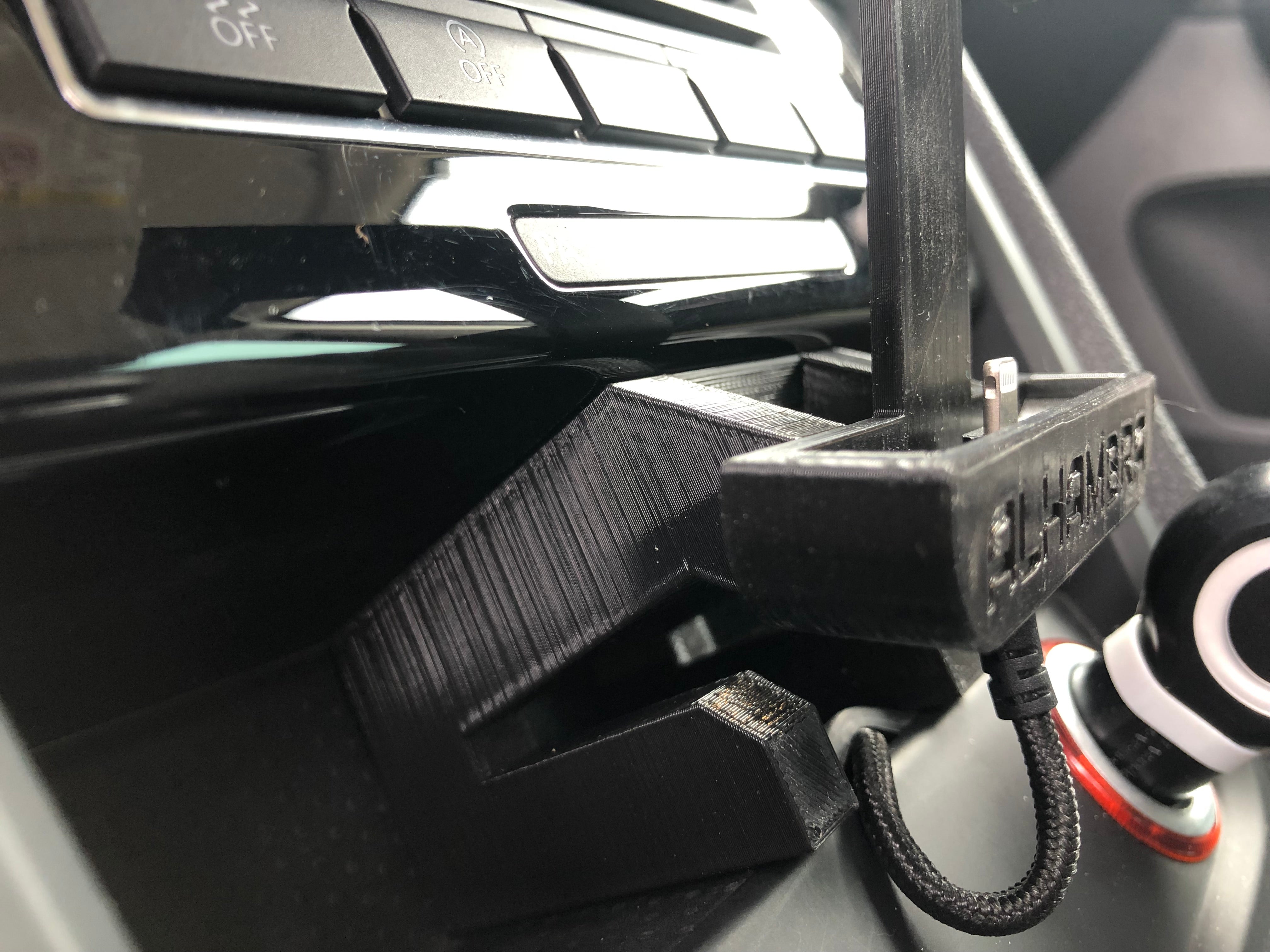 Aktualisierte Version des vorherigen Halters für iPhone8 für SEAT FullLink Version 2.0. Der bisherige Halter bestand aus drei Teilen, bei dieser neueren Version wurde der Mittelteil entfernt, der zum Verstecken des Kabels diente. Das Mobil saß zu hoch und störte die Klimaanlagensteuerung (Lüftung) und zu nah behinderte es den Gangwechsel, was in dieser Version jedoch nun angepasst wurde. Mit einem aktualisierten Design und dem „Weniger ist mehr“-Ansatz wurden die Materialien in diesem Halter minimiert, um ein leichteres und funktionelleres Benutzererlebnis zu bieten.