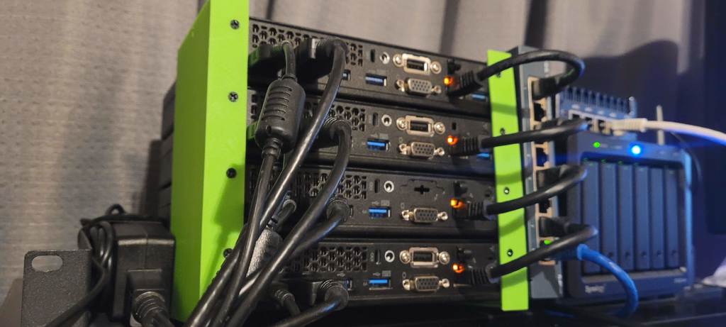 Diese praktische Rack-Montagelösung optimiert den Platzbedarf und sorgt für Ordnung in Ihren Lenovo Thinkcentre M93p Tiny PCs. Das System ermöglicht die sichere und effiziente Stapelung von bis zu vier Mini-PCs. Bei geringerem Bedarf lässt sich das Design problemlos an weniger Geräte anpassen und ist somit flexibel für verschiedene Setups.