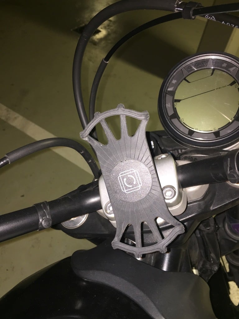 Ihr Smartphone wird durch vier starke Gummibänder an jeder Ecke sicher an seinem Platz gehalten. Die dazugehörige Platte wird auf einem stabilen Sockel montiert, der sich unauffällig an Ihrem Motorradlenker befestigen lässt. Praktisch: Die Platte lässt sich leicht abnehmen und drehen, was optimale Sicht und Flexibilität während der Fahrt bietet.