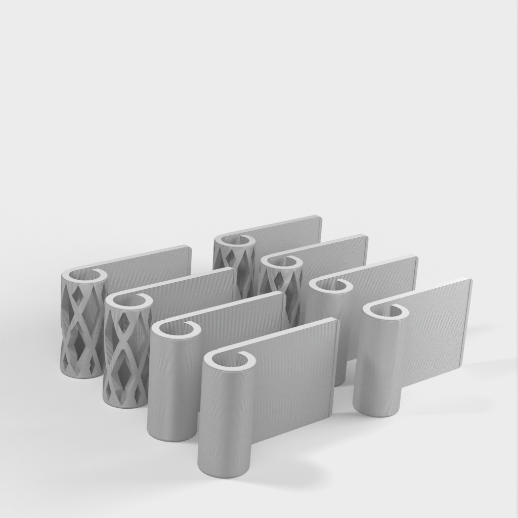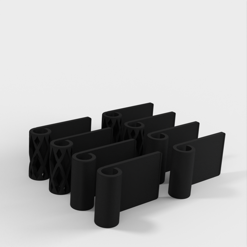 Der S-Pen-Halter ist ein Halter für den Samsung-Stift. Es gibt ihn in zwei Designs: einem Kreuzmuster, das flexibler ist, und einem einfarbigen Druck, der stärker ist und den Stift schwerer hineinbekommt, aber mit der Zeit weicher werden dürfte. Die Halterung kann mit #M Command Klebestreifen befestigt werden.