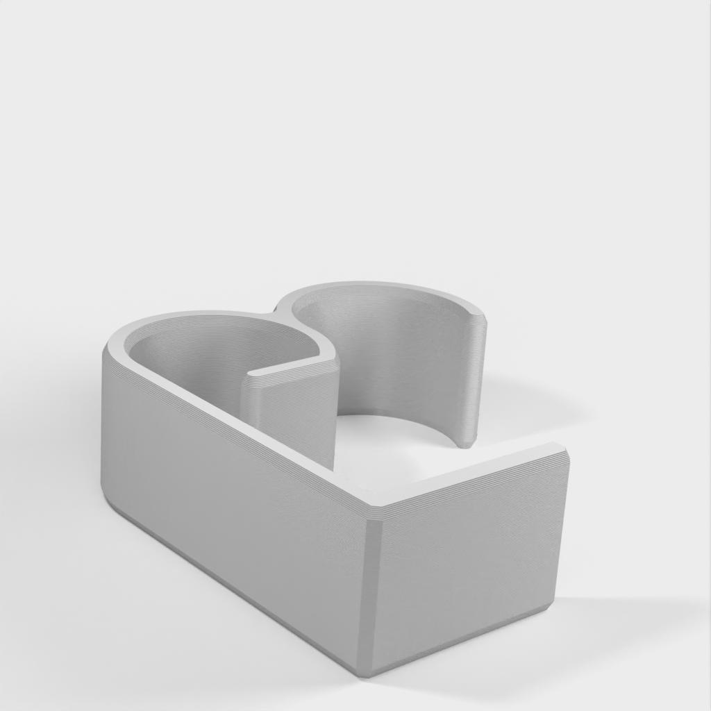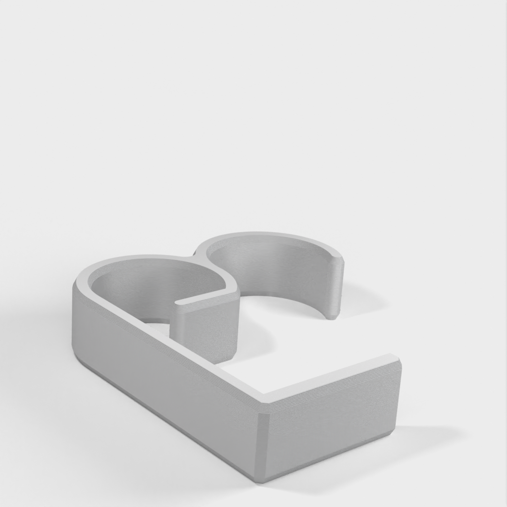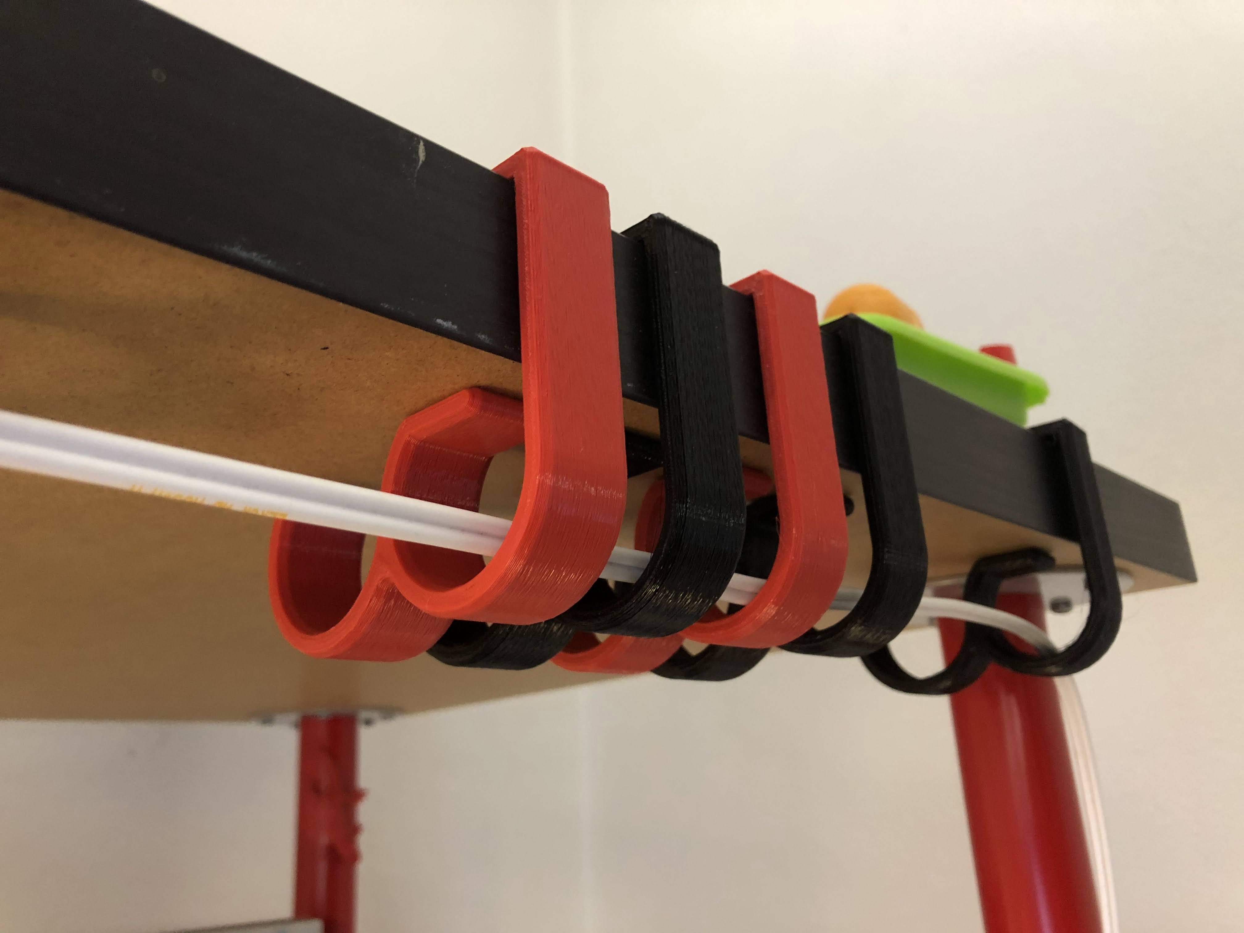 Eine Reihe von Modellen zur Unterstützung Ihres Kabelmanagements. Diese Clips sind so konzipiert, dass sie an Schreibtischen oder Tischen befestigt werden können. Die Clips wurden ursprünglich für Ikea-Linnmon-Tischplatten hergestellt, sind aber vollständig kompatibel mit Lagkapten- und Målvakt-Tischplatten sowie anderen Tischplatten oder Schreibtischen mit einer Dicke von 50 mm (~2 Zoll). Ein Modell verfügt bei der Montage über einen geschlossenen Ring, das andere Modell verfügt über einen zusätzlichen, teilweise offenen Ring, der das einfache Hinzufügen oder Entfernen von Drähten im Handumdrehen ermöglicht. Beide Modelle sind in den Breiten 20 mm und 30 mm erhältlich, andere Breiten können jedoch problemlos durch Größenänderung in Ihrem Schneidprogramm hergestellt werden.