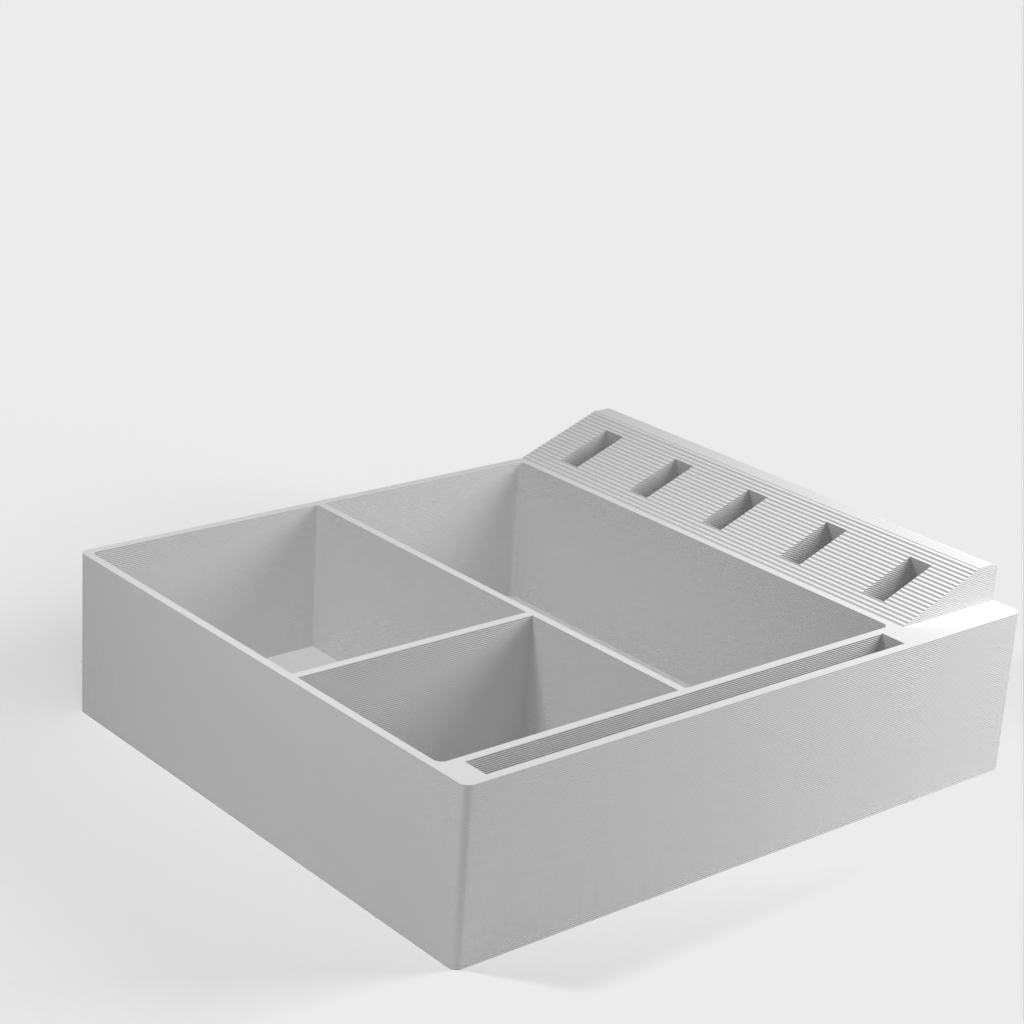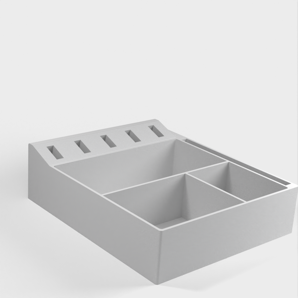 Ein einfacher Desktop-Organizer. Mit diesem Produkt können Sie Ihr Büro ganz einfach organisieren. Platzieren Sie Ihre Büroutensilien einfach im Organizer-Bereich und sorgen Sie so für mehr Ordnung auf Ihrem Schreibtisch und eine effizientere Arbeitsumgebung.