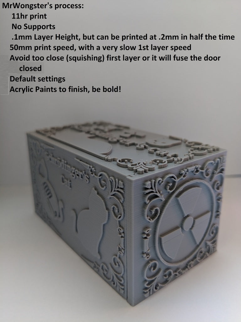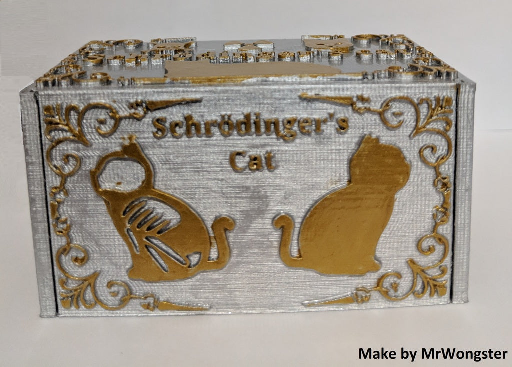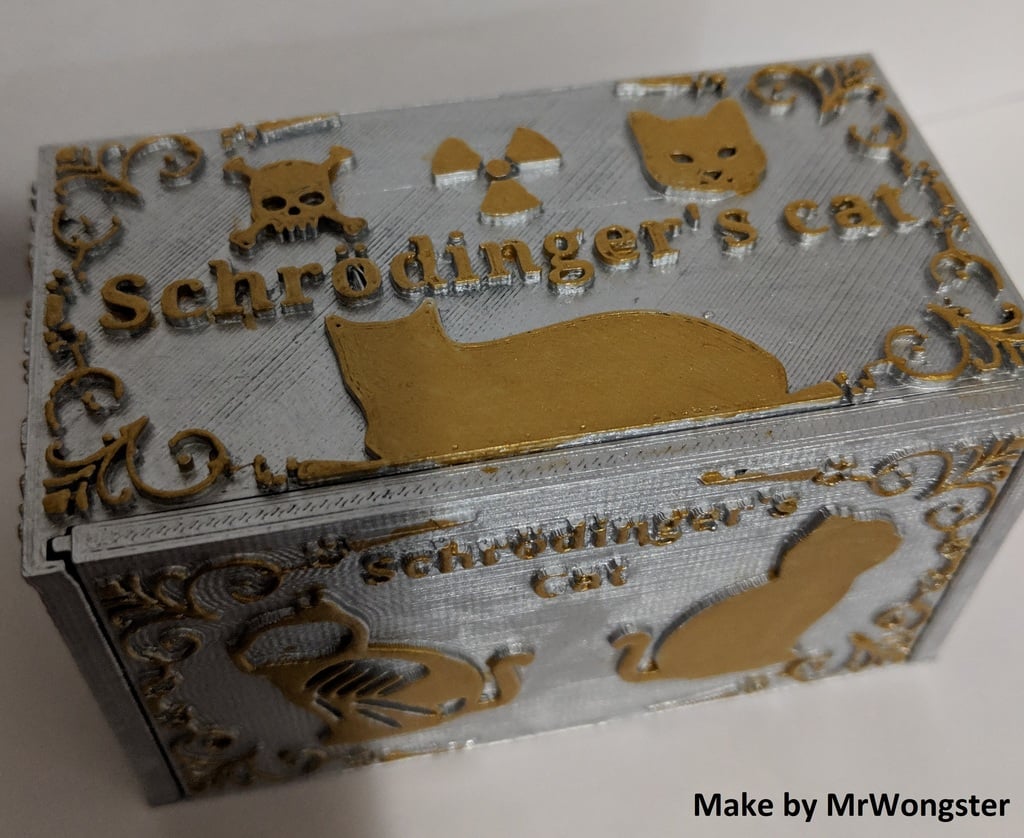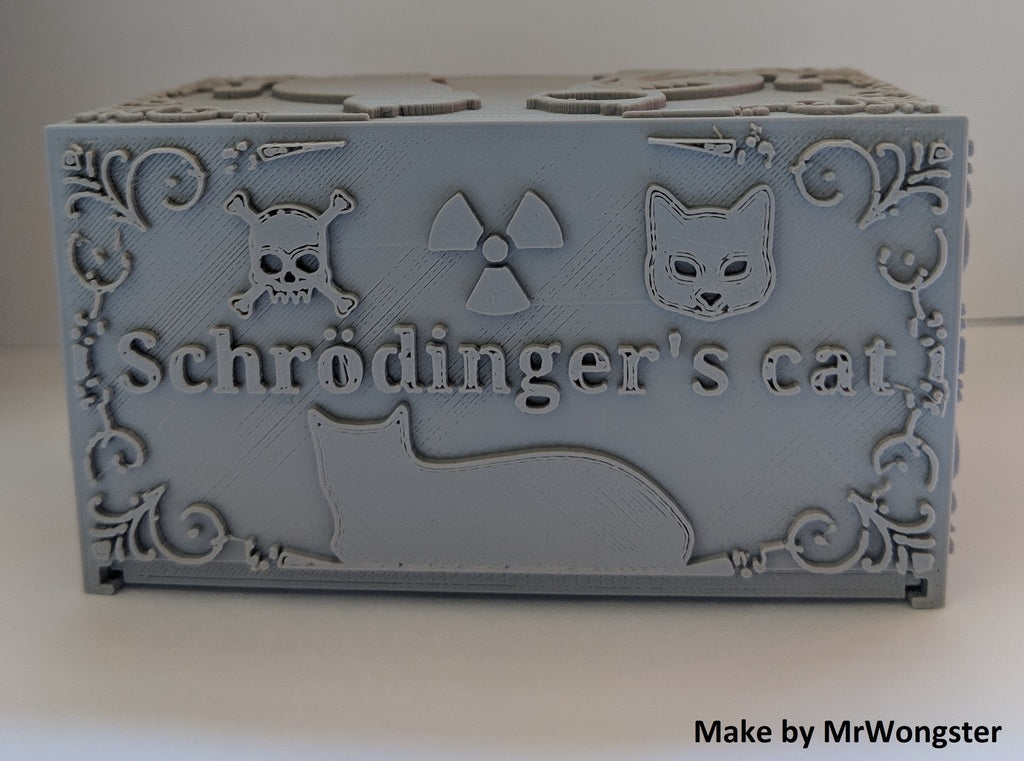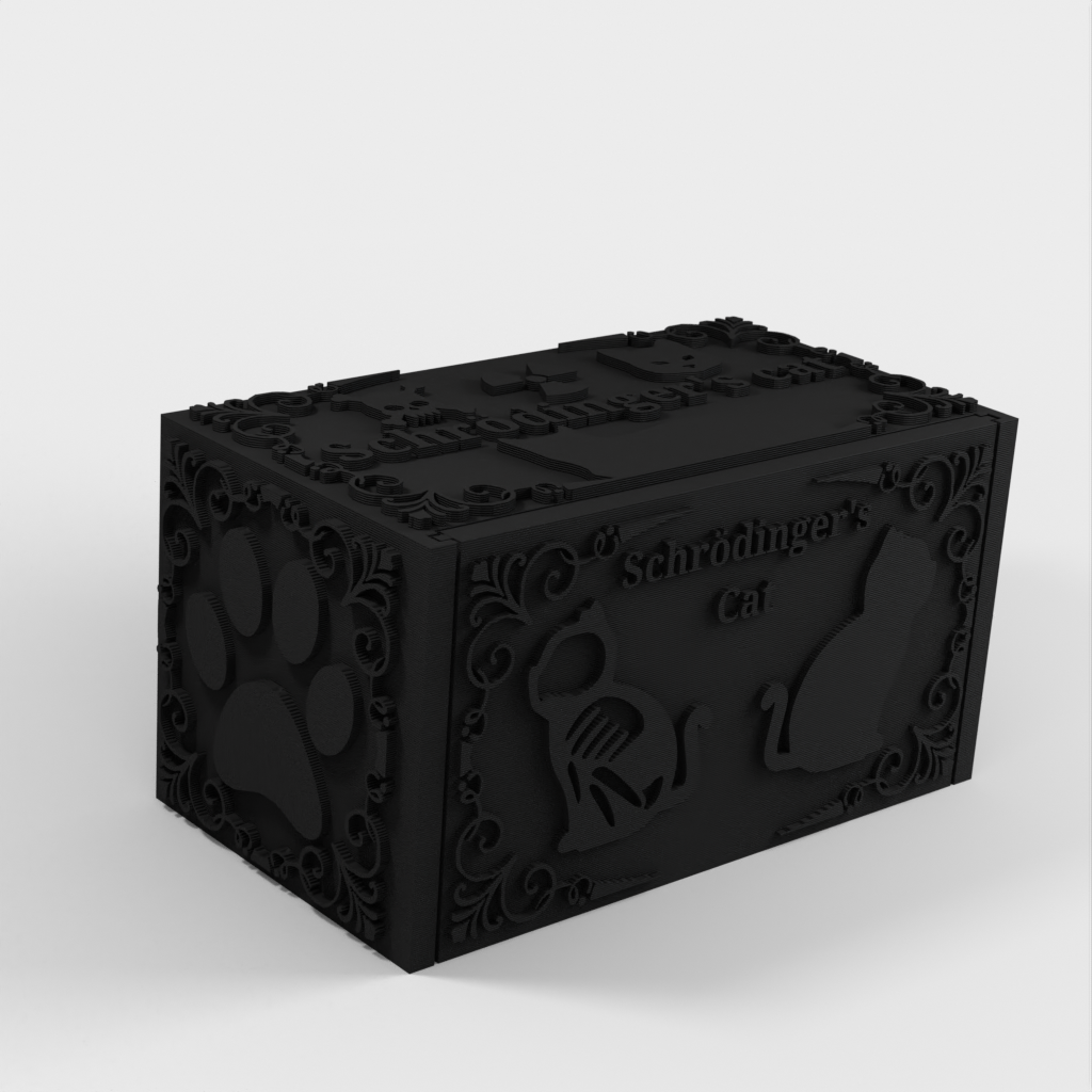 Schrödingers Katze ist ein 3D-Druckmodell, das Erwin Schrödingers Gedankenexperiment veranschaulicht. Nachdem Sie die erforderlichen Dateien heruntergeladen haben, können Sie eine zufällige STL-Datei auswählen, die entweder eine lebende oder eine tote Katze enthält. Unabhängig davon, ob Sie sich für das eine oder andere entscheiden, erfahren Sie erst, welches Modell Sie ausgewählt haben, wenn der Ausdruck fertig ist und Sie die Box öffnen. Dieses Produkt dient gleichzeitig als Gesprächseinstieg, Illustration der Quantenphysik und als lustige Schreibtischdekoration für alle Physikbegeisterten.