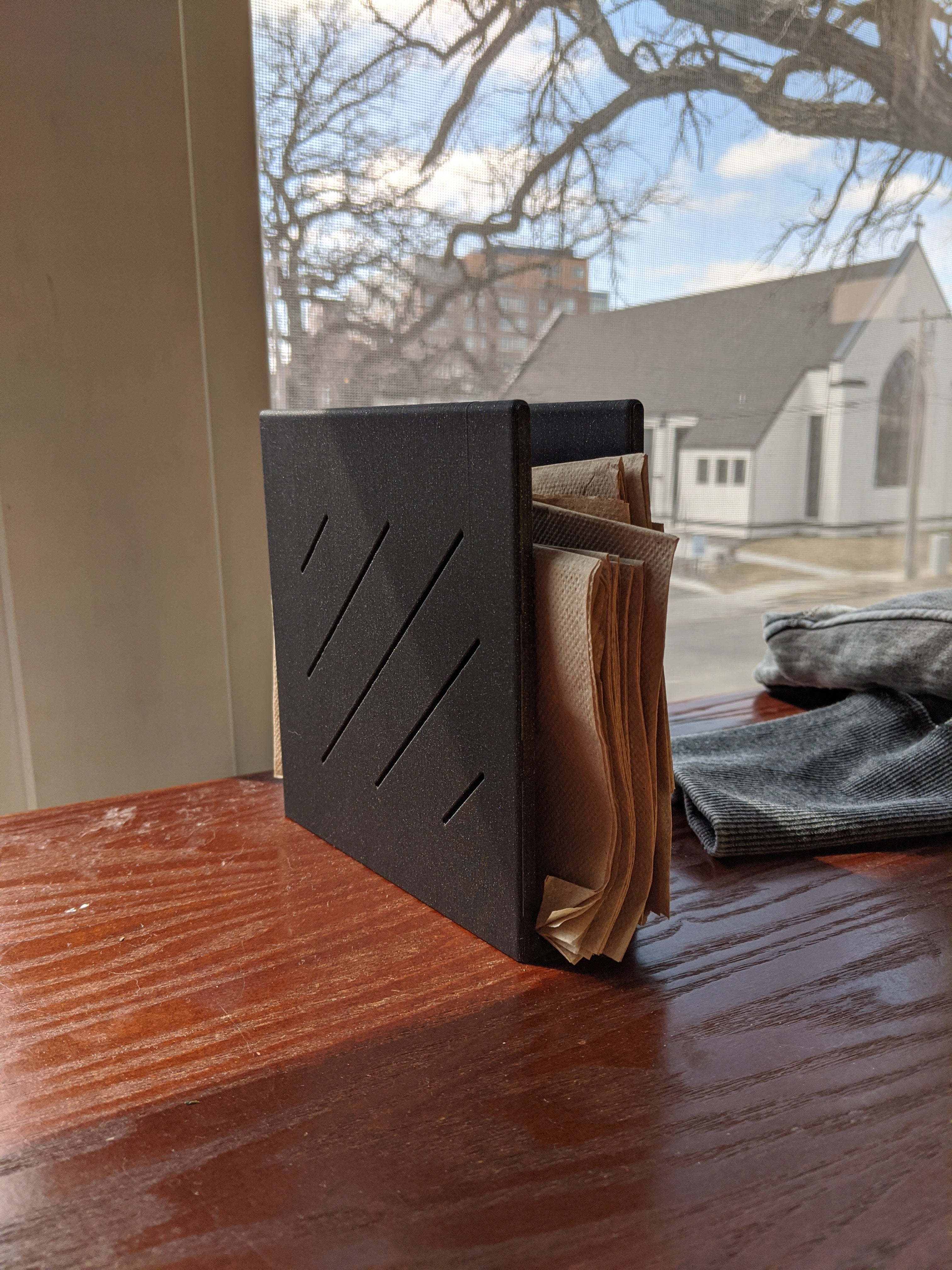 Einfacher Serviettenhalter mit halbinteressantem Design. Sehr praktisch, um Ihre Servietten an Ort und Stelle zu halten und organisiert zu halten. Passend für alle gängigen Servietten.