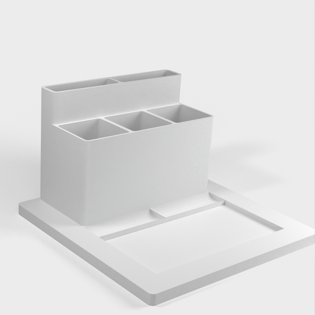 Einfacher und praktischer Schreibtisch-Organizer. Dieser Artikel schafft Ordnung und Übersichtlichkeit für alle Ihre Büroutensilien, indem er sie übersichtlich und leicht zugänglich hält – alles bekommt seinen eigenen Platz.
