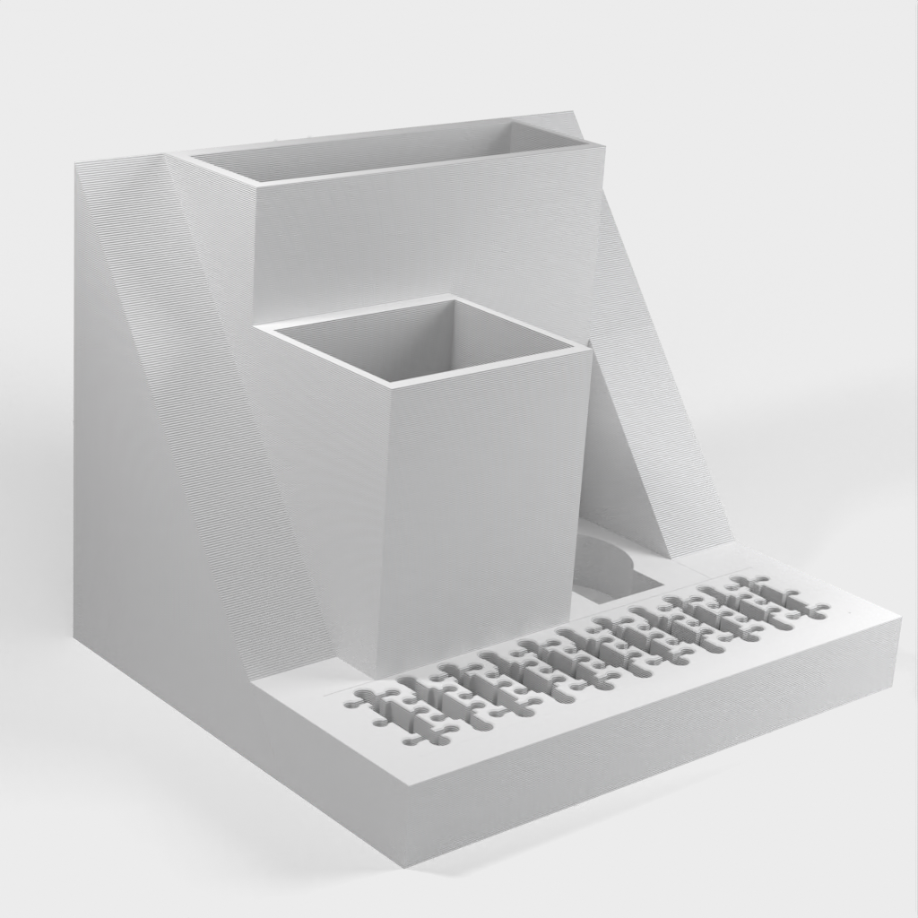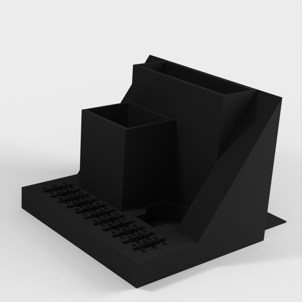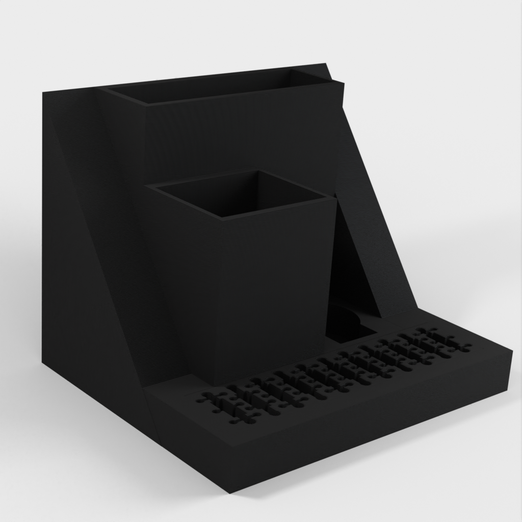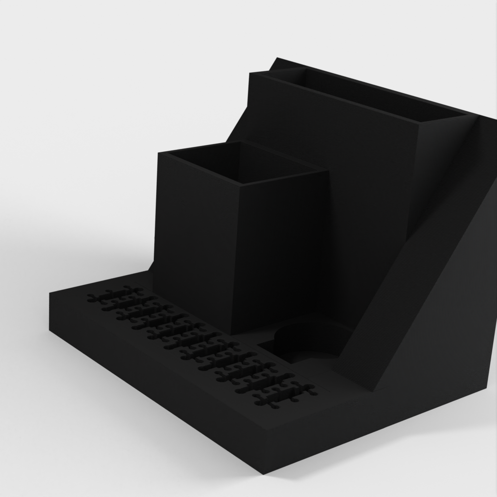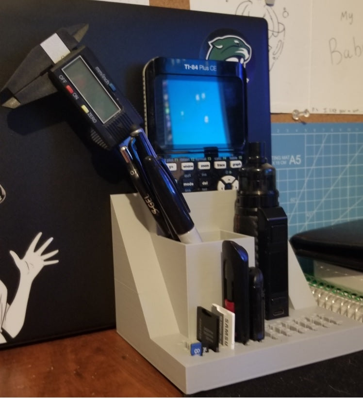 Ein Schreibtisch-Organizer mit Platz für einen Laptop, der problemlos unter eine Korkplatte neben Ihrem Schreibtisch geschoben werden kann. Das Modell verfügt außerdem über einen integrierten USB- und SD-Kartenhalter sowie separate Steckplätze für einen TI-84 Plus CE und Ihre Stifte oder andere Kleinteile. Organisieren Sie Ihren Schreibtisch und steigern Sie Ihre Produktivität mit diesem eleganten und funktionalen Organizer.