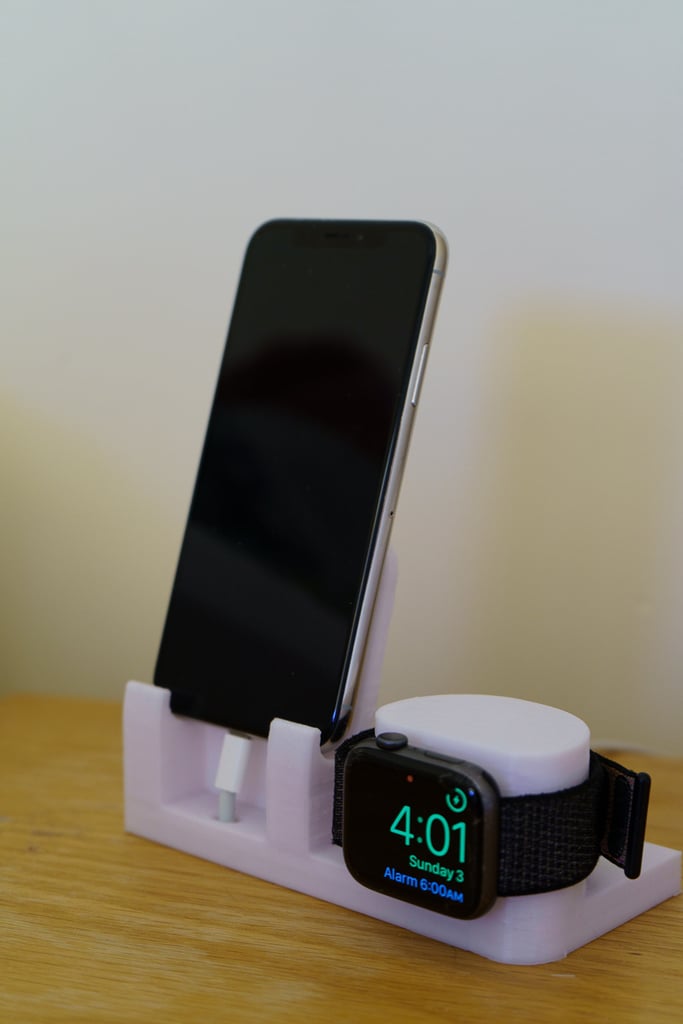 Diese elegante Ladestation bietet eine übersichtliche und praktische Lösung zum Laden Ihres iPhones und Ihrer Apple Watch . Das optimierte Design mit präzise ausgerichteten Löchern für Lightning- und USB-Kabel gewährleistet eine einfache und sichere Installation Ihrer Ladekabel. Dank des verbesserten Kabelmanagements, einschließlich größerer Kanäle und diskreter Halterungen an der Unterseite, verhindern Sie, dass Kabel herausfallen, und Ihr Ladebereich bleibt aufgeräumt und minimalistisch. Diese Apple Watch-Ladestation hilft Ihnen, Ihre Geräte übersichtlich und einsatzbereit zu halten.
