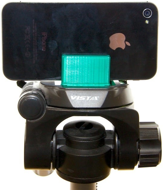 Maßgeschneiderte Telefonständerhalterung, maßgeschneidert auf Ihr Telefon und Ihren Ständer. Diese Halterung sitzt perfekt auf einem Ständer mit Schnellverschluss und bietet Platz, um Ihr iPhone (oder ein anderes Telefon mit flacher Vorder- und Rückseite) zur sicheren Befestigung zwischen zwei Kunststoffstücken zu schieben.