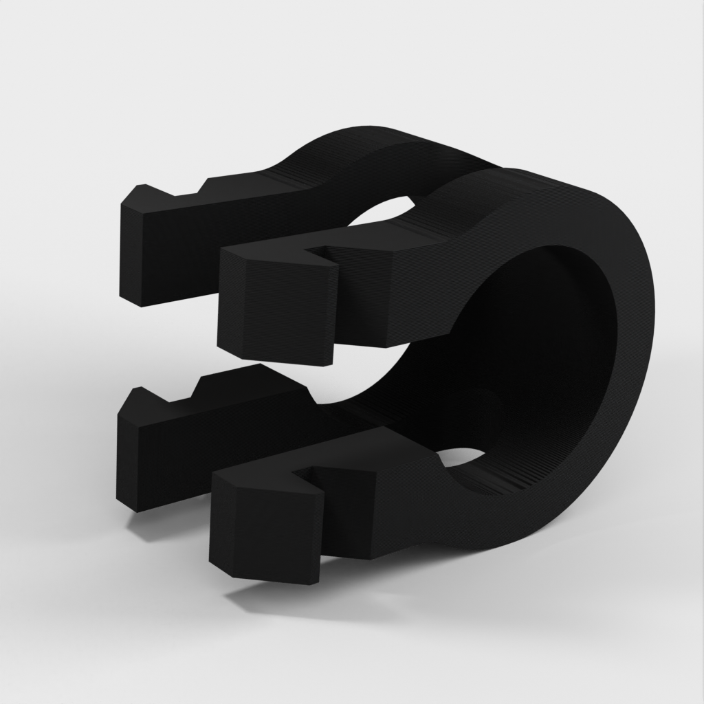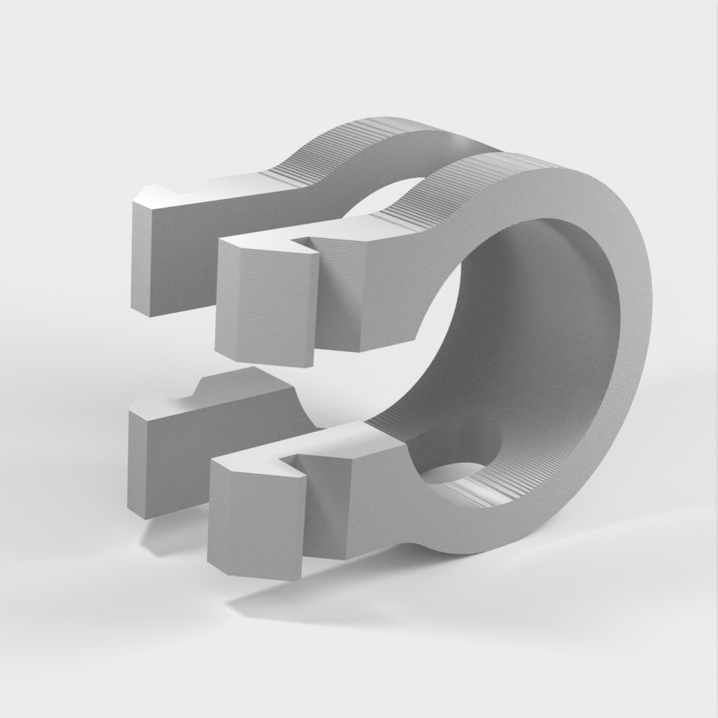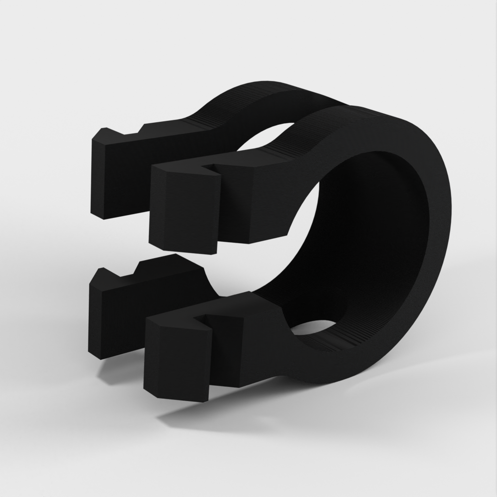 Querdrahtführungsklammern sind für die Montage auf einem 2020-Profil vorgesehen. Es hält Drähte, die sie im rechten Winkel kreuzen. Der Clip ist in zwei Größen mit einem Innendurchmesser von entweder 11 mm oder 8,5 mm erhältlich, was für die gängigsten Drahtgrößen geeignet ist.