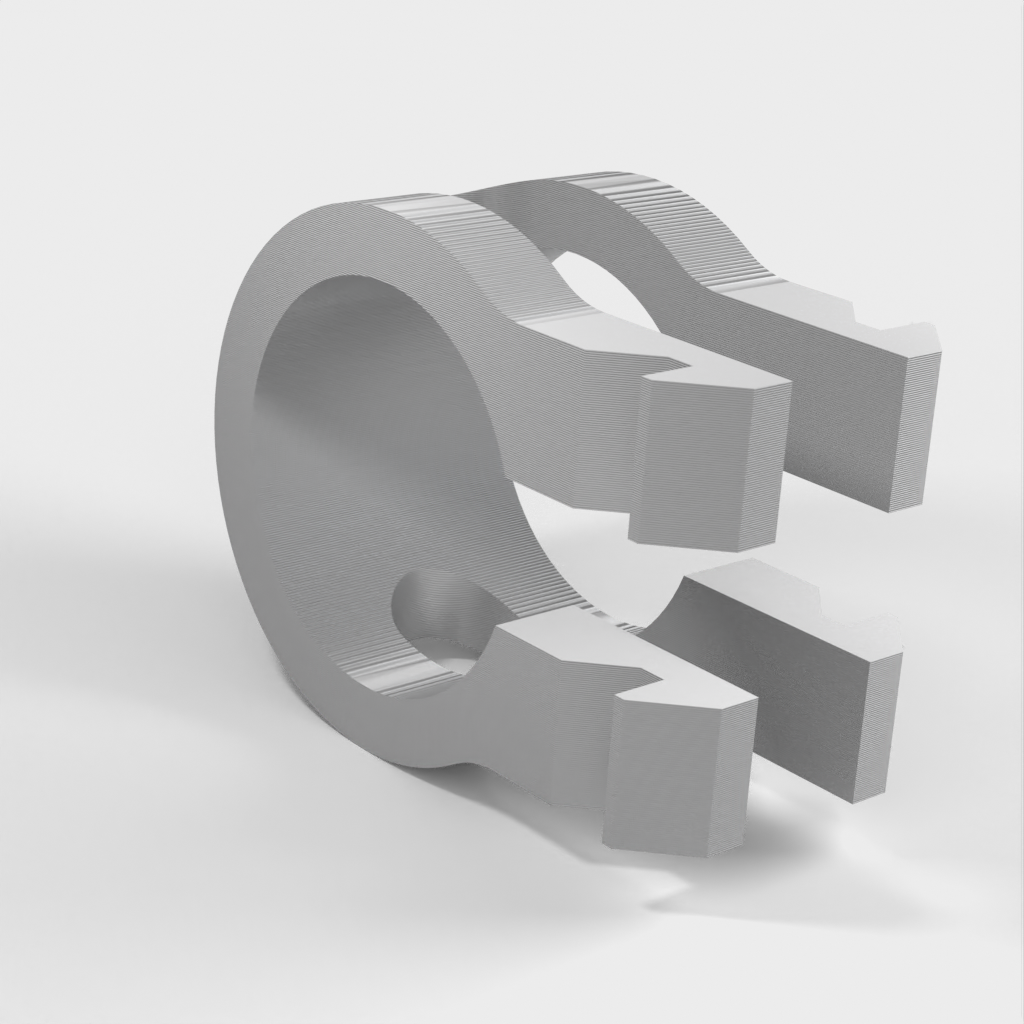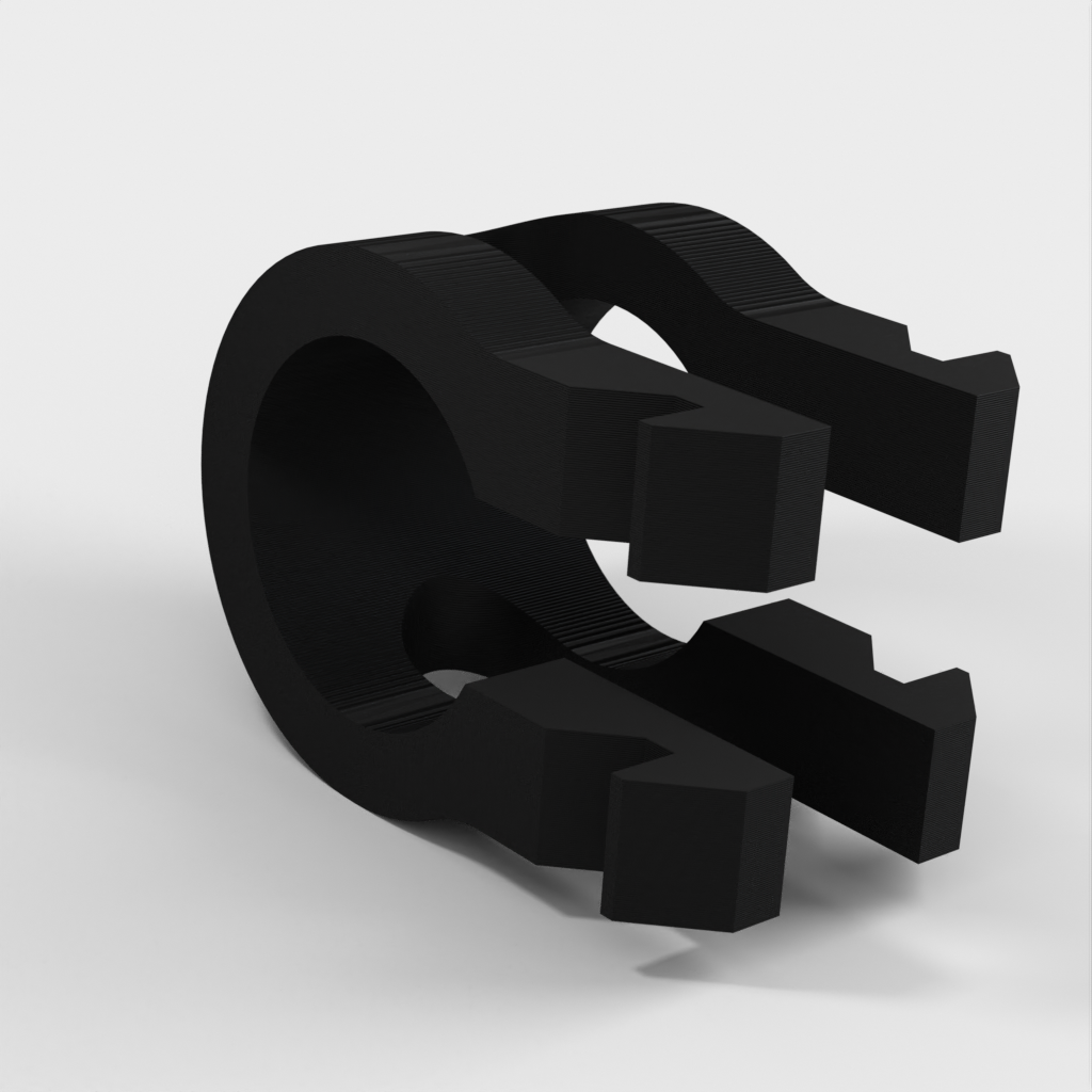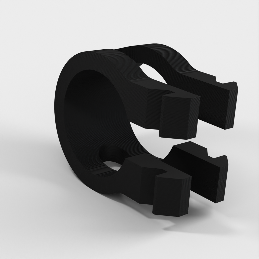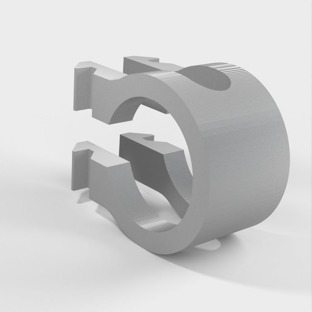 Querdrahtführungsklammern sind für die Montage auf einem 2020-Profil vorgesehen. Es hält Drähte, die sie im rechten Winkel kreuzen. Der Clip ist in zwei Größen mit einem Innendurchmesser von entweder 11 mm oder 8,5 mm erhältlich, was für die gängigsten Drahtgrößen geeignet ist.