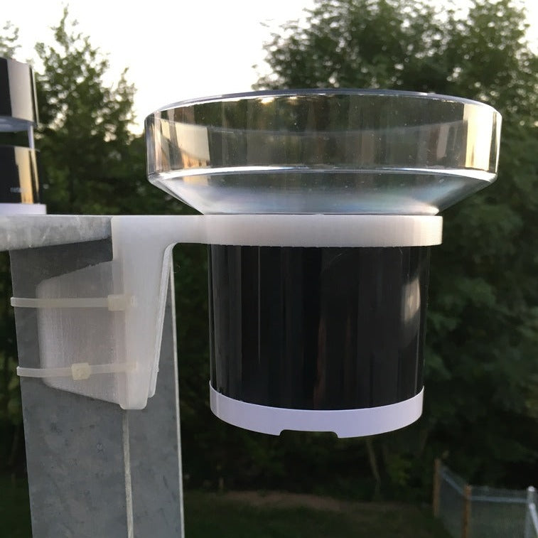 Einfache Aufhängung für einen Netatmo-Regenmesser, damit Sie sicherstellen, dass er das gesamte Wasser auffängt. Es ist für einen Handlauf konzipiert, da es 41 mm tief und 9 mm breit ist.
