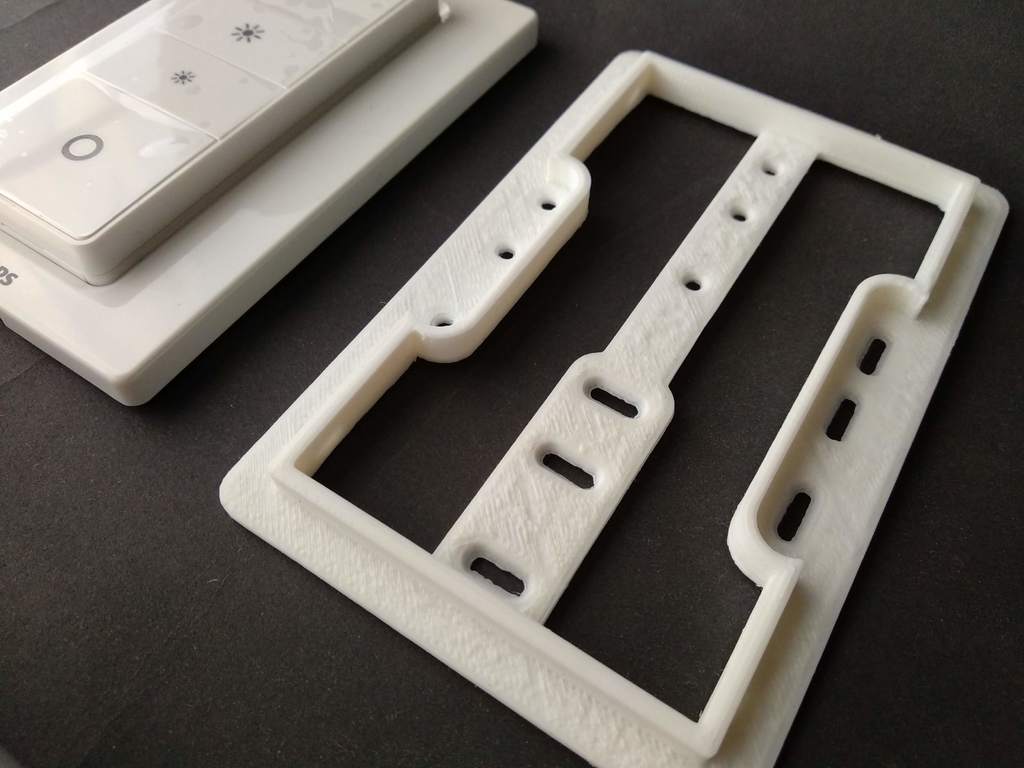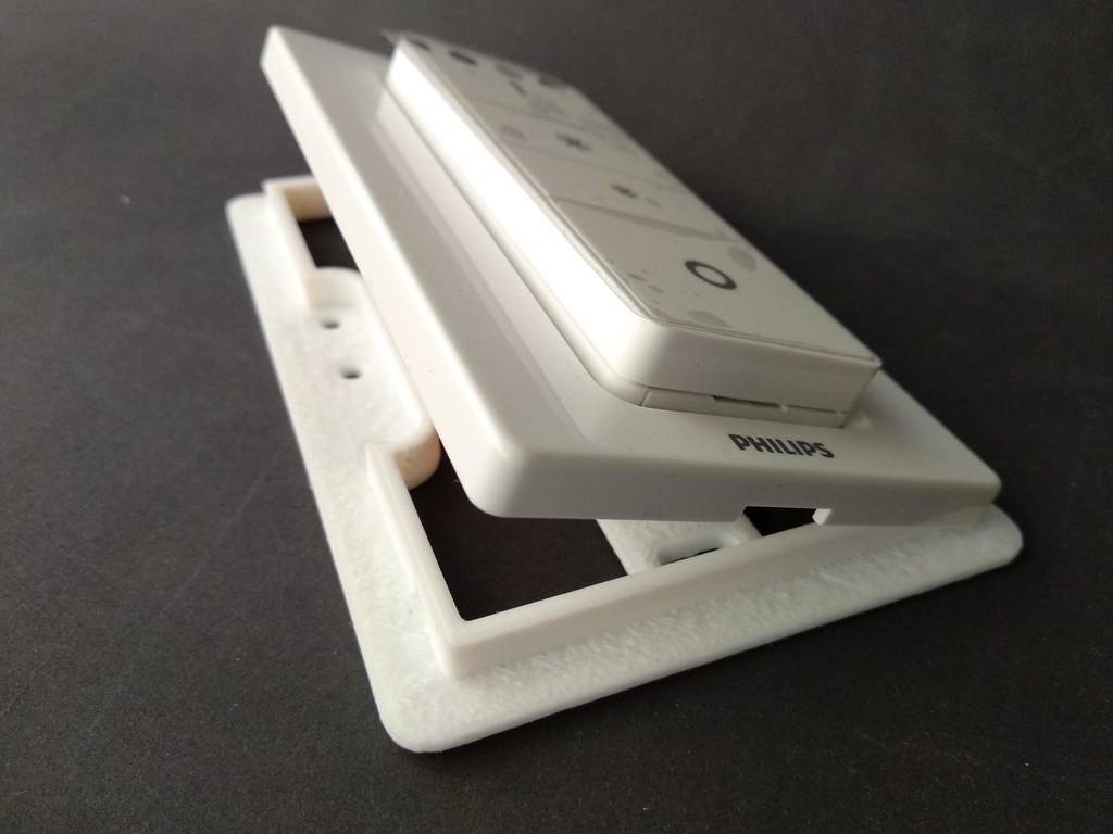 Philips Hue Dimmerschalter-Adapterdesign zum Aufstecken auf eine Schalterdose.