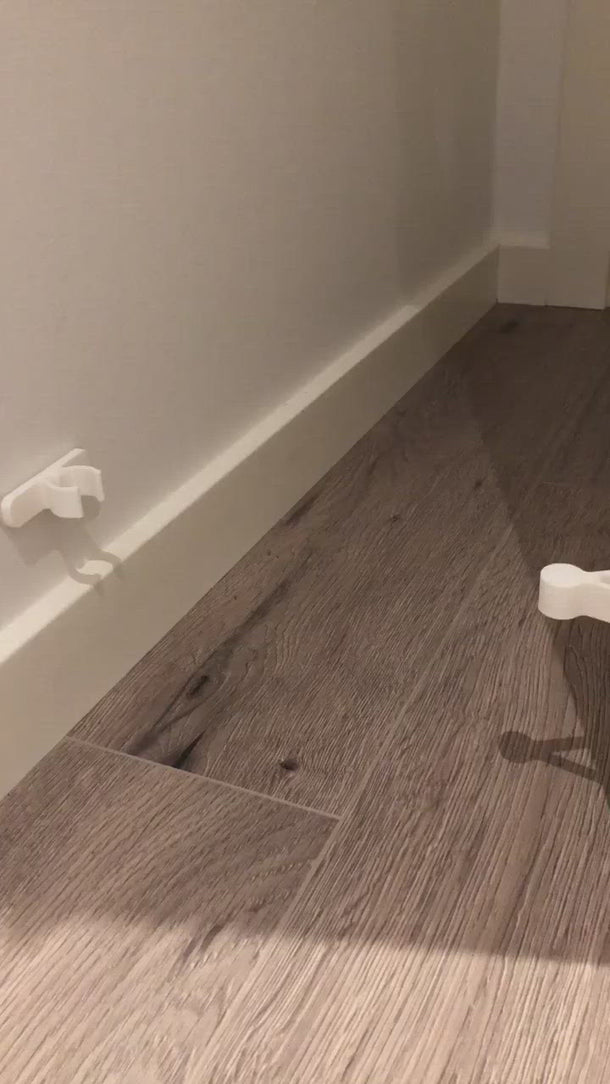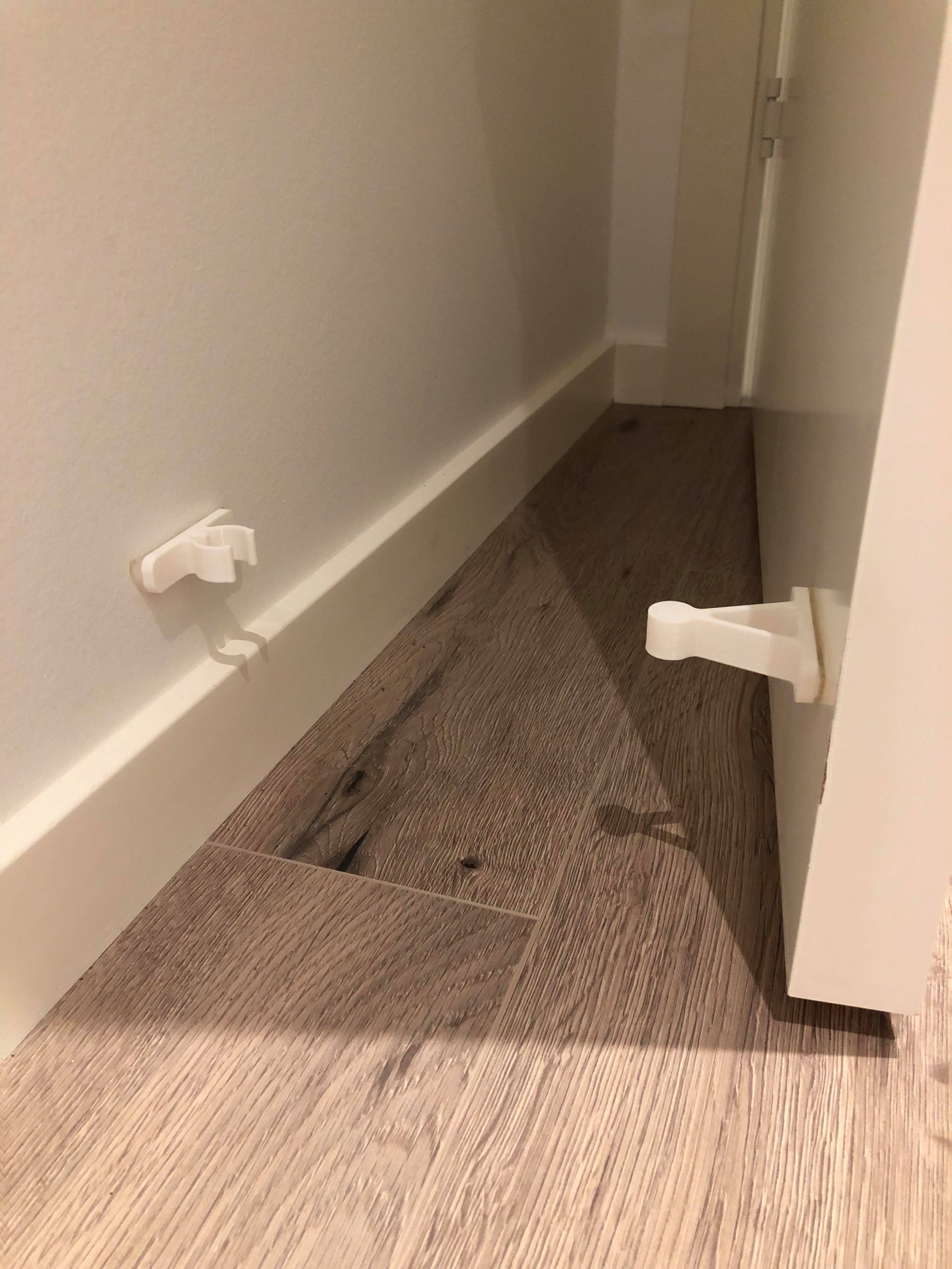 Hält mit doppelseitigem Klebeband an Tür und Wand.