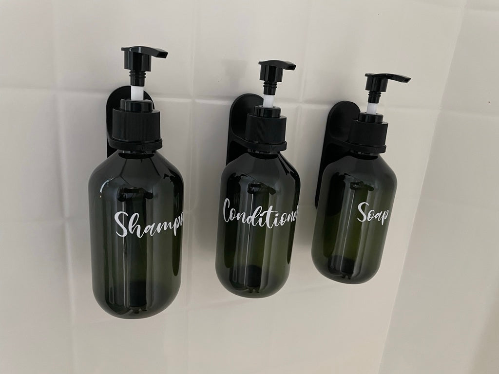 Dieser wandmontierte Seifenspender für das Badezimmer ist für Seife, Shampoo, Lotion usw. in Flaschen mit einem maximalen oberen Durchmesser von 24,5 mm (einschließlich Flaschengewinde) konzipiert. Er passt perfekt zu den günstigen 10oz-Pumpflaschen von Amazon. Nach der Oberflächenvorbereitung mit IPA-Reiniger kann er einfach mit wasserfestem 3M-Klebeband an der Badezimmerwand oder am Spiegel befestigt werden. (Nicht im Lieferumfang enthalten)