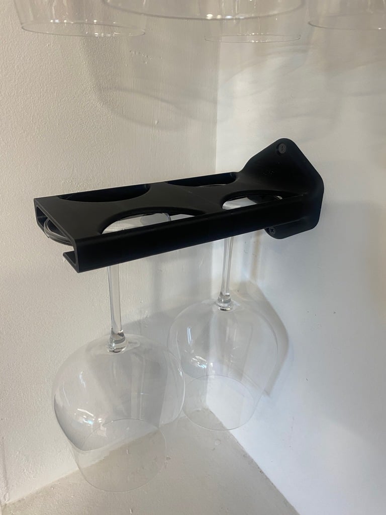Die Installation ist unkompliziert und erfordert nur drei 4-mm-Schrauben (nicht im Lieferumfang enthalten) für eine solide und zuverlässige Wandmontage. Das diskrete Design sorgt für Ordnung auf Ihren Oberflächen und einen einfachen Zugriff auf Ihre Weingläser.