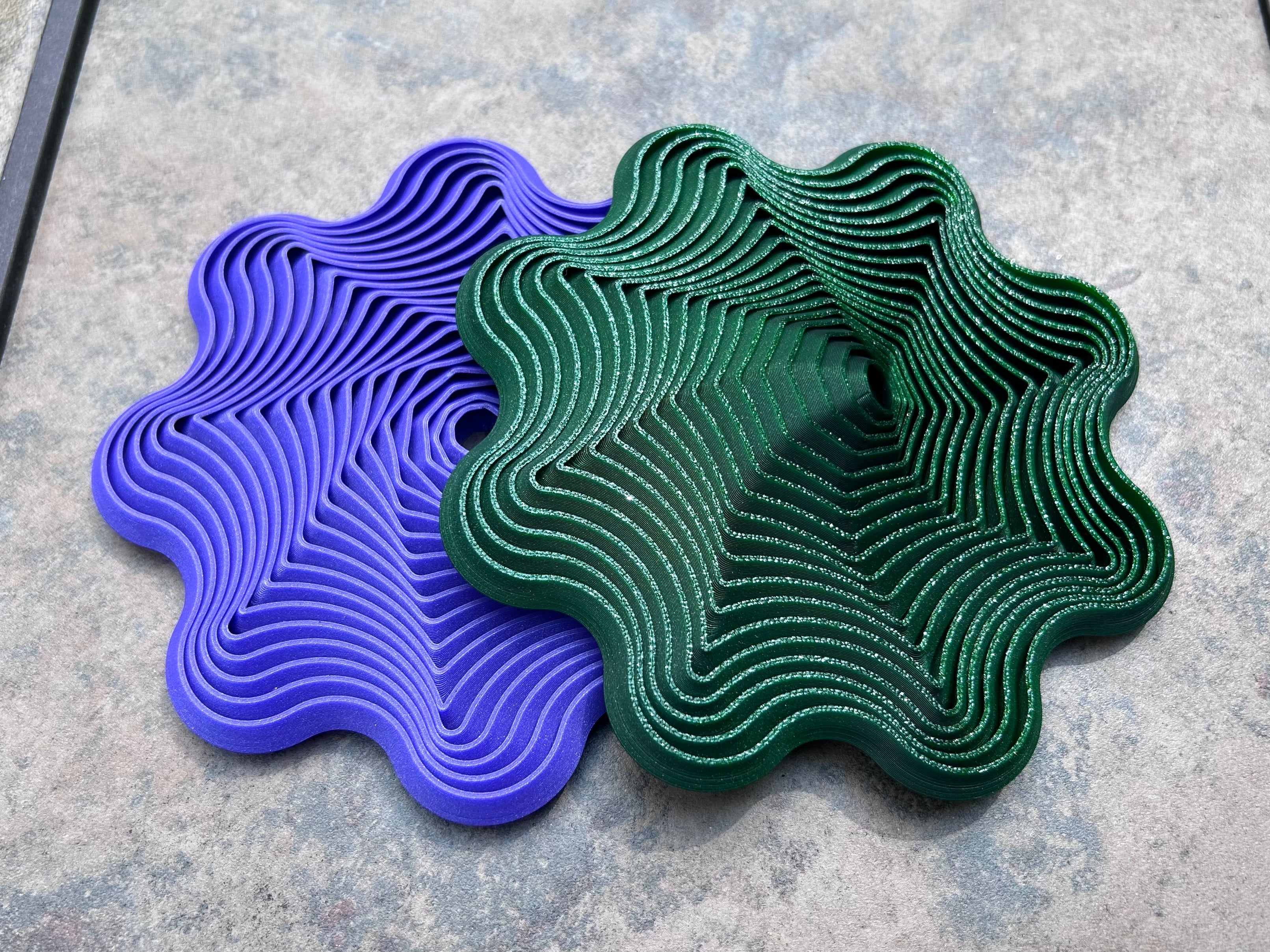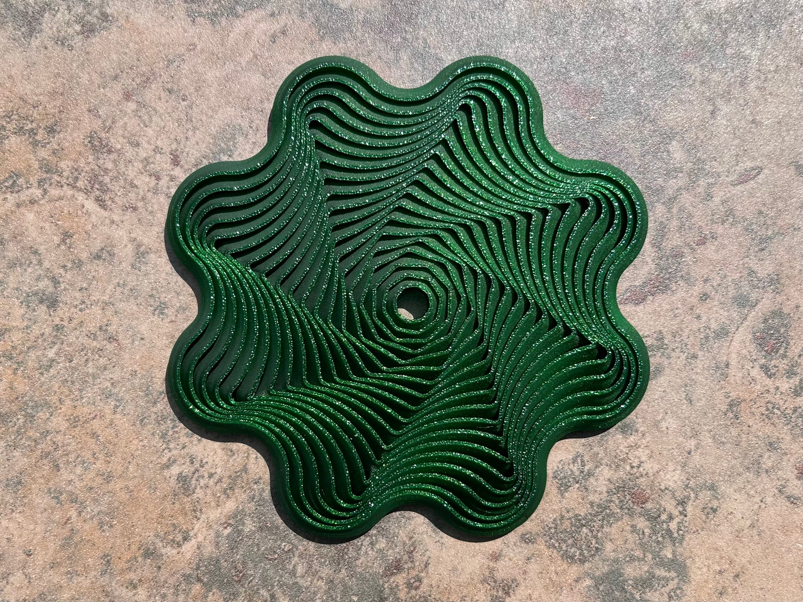 Erleben Sie die beruhigende Wirkung des Wavy Nested Fidget, eines Zappelspielzeugs mit einem einzigartigen und ästhetisch ansprechenden Wellenmuster. Dieses Fidget bietet ein taktiles Erlebnis, das sich allmählich von leicht runden Wellen am äußeren Rand zu Achtecken in der Mitte verändert, was sowohl das Ansehen als auch die Verwendung spannend macht.