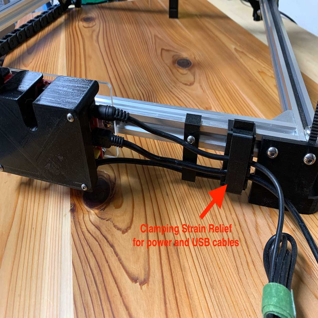 Dieser Brock 2020-Kabelhalter dient zur sicheren Befestigung von Strom- und USB-Kabeln an Ihrer 30x40-Lasergravur-CNC-Maschine. Er lässt sich einfach am 2020-Profil montieren und dient als effektive Kabelklemme, die die Steuerplatine entlastet.