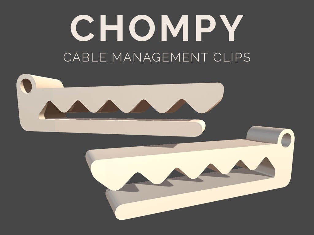 Die Version 3 von Chompy ist mit einer leicht erweiterten Öffnung optimiert und eignet sich daher besonders für Kabel mittlerer und Standardgröße. Dies gewährleistet ein einfaches und müheloses Einführen und Entnehmen der Kabel nach Bedarf. Der Clip lässt sich einfach mit doppelseitigem Klebeband befestigen und bietet so eine schnelle und flexible Lösung. Für eine dauerhaftere Befestigung besteht die Möglichkeit, das Design für die Verwendung mit Schrauben zu modifizieren.