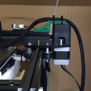- Verhindert, dass Kabel und Filamentschläuche vom Schrittmotor erfasst werden.