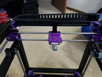 Die seitlich angebrachte Kabelkette dient als effektiver Kabelhalter, der alle Kabel ordentlich an ihrem Platz hält und so für ein aufgeräumteres Drucker-Setup sorgt – eine echte Kabel-Ordnungslösung. Dieses Design umfasst sowohl den modifizierten X-Schlitten als auch eine Montagehalterung zur Befestigung des anderen Endes der Kabelkette am Druckerrahmen.