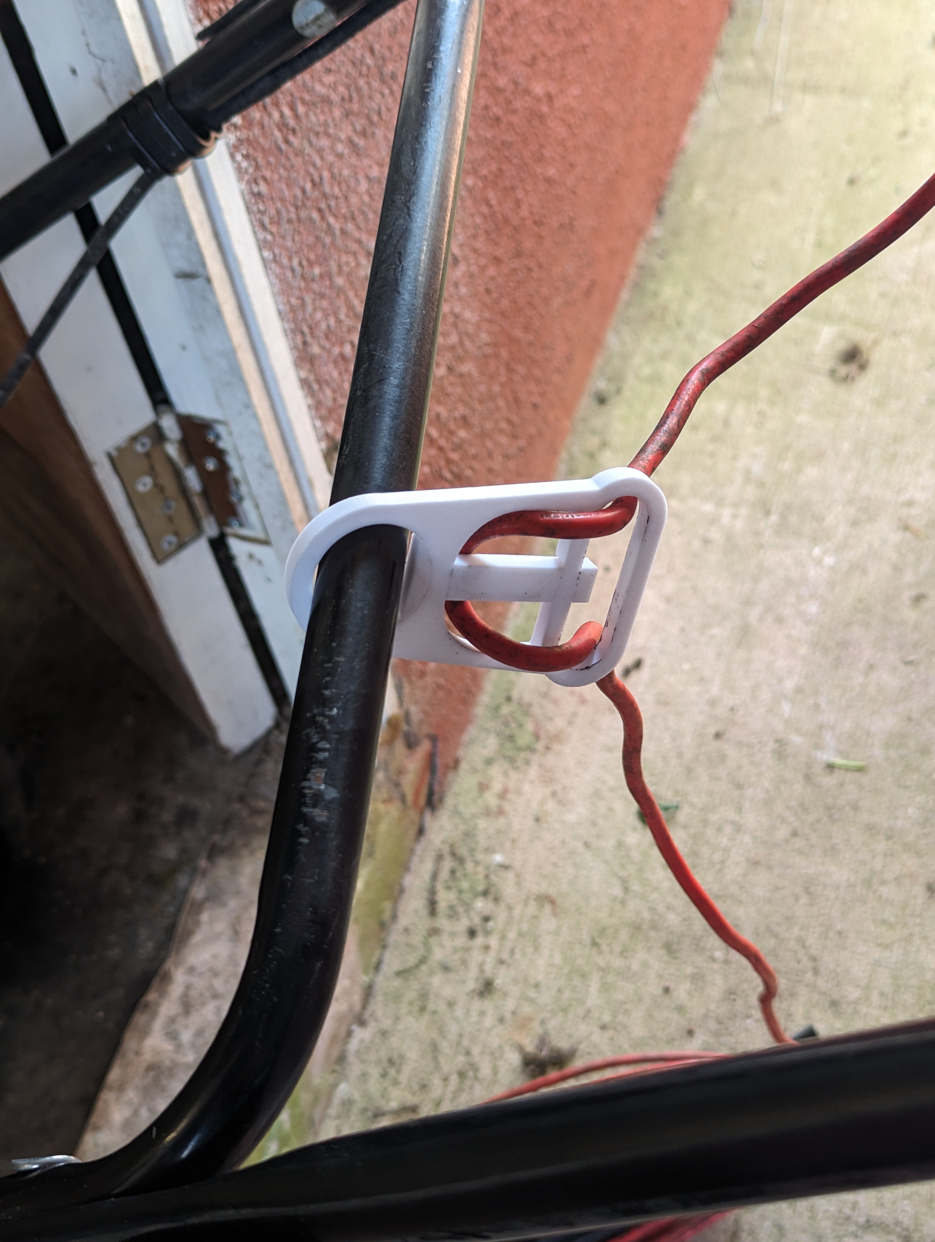 Dieser Kabelhalter aus strapazierfähigem PETg-Material ist für den Außeneinsatz konzipiert und sorgt für eine stabile Kabelaufhängung. Die Montage ist unkompliziert, und wer zusätzliche Stabilität wünscht, kann die Verbindungen mit etwas Sekundenkleber bestreichen. Mit diesem Kabelhalter sorgen Sie für Ordnung und verlängern die Lebensdauer Ihres Rasenmäherkabels.