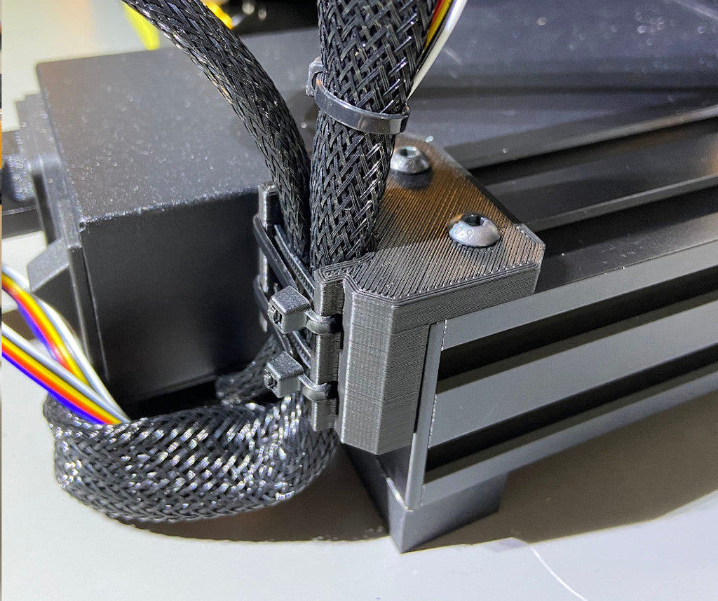 Die Installation ist einfach und erfolgt über Schrauben und Streifen, die den Halter sicher an der Rückseite des Druckers befestigen. Eine effektive Kabelklemme , die dazu beiträgt, einen ordentlichen und gut funktionierenden Arbeitsplatz für Ihren 3D-Drucker zu gewährleisten.