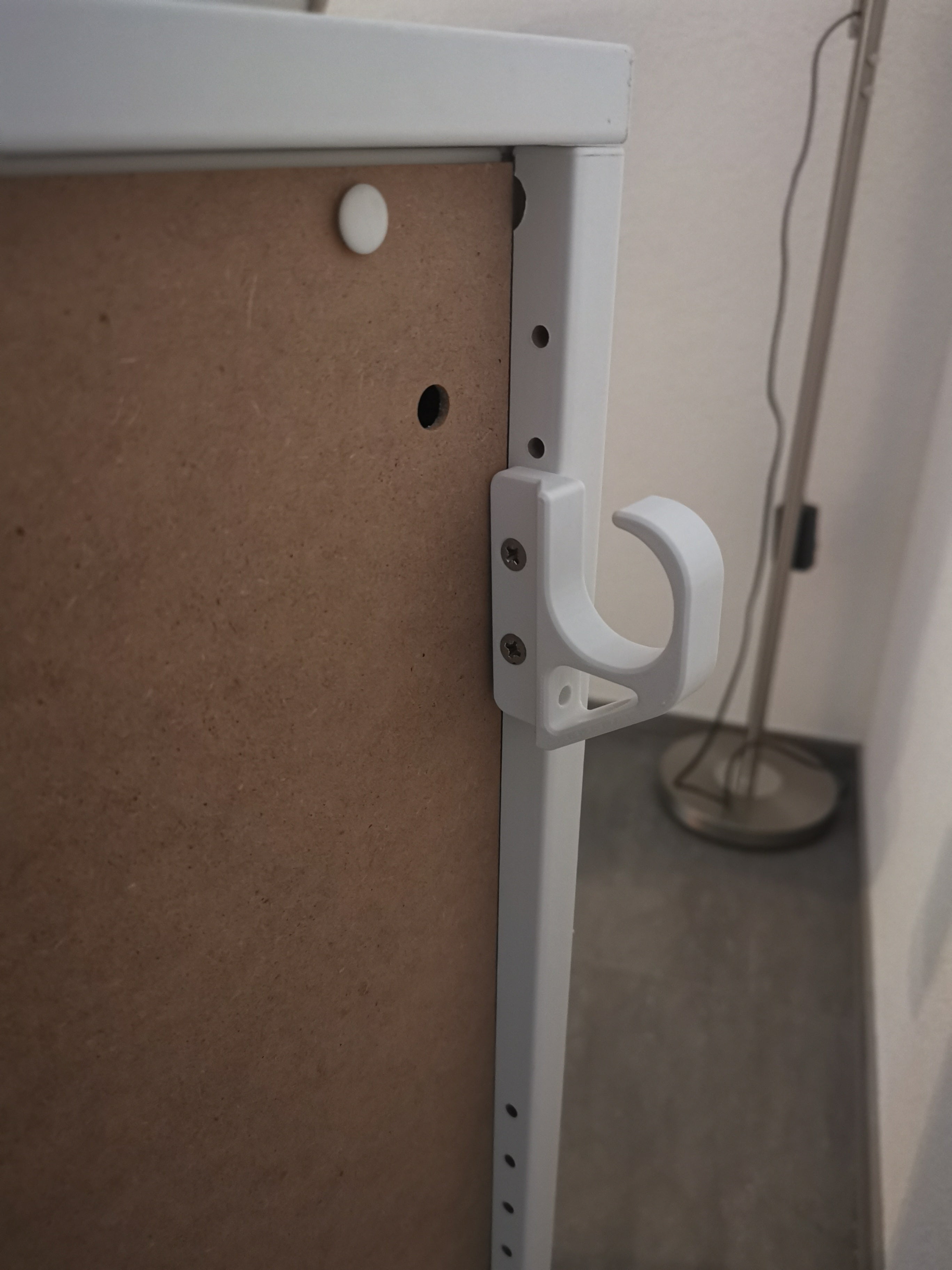 Der Haken wurde speziell für die Rückseite von IKEA Platsa-Möbeln entwickelt und verfügt über einen präzisen Lochabstand für eine nahtlose Integration. So schaffen Sie ganz einfach ein aufgeräumtes Erscheinungsbild rund um Ihre Möbel und Geräte.
