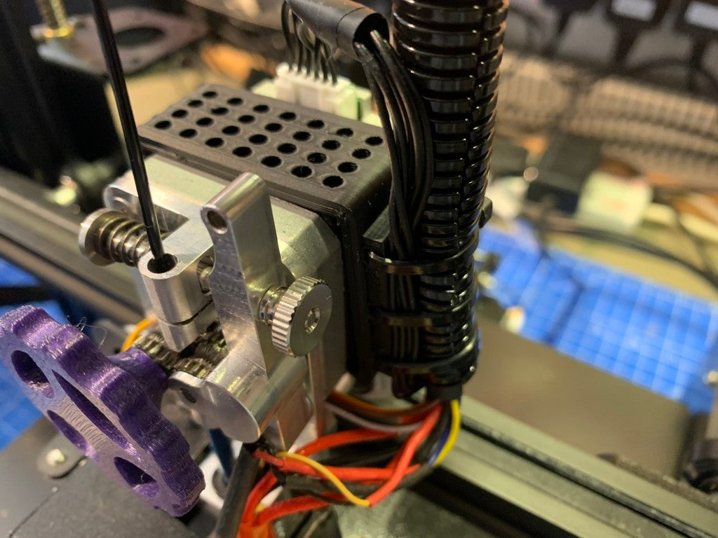 Haben Sie lose Kabel am Extruder Ihres 3D-Druckers, insbesondere nach der Installation eines Micro Swiss Direktantriebssystems auf Ihrem Ender-3 Pro? Dieser praktische Kabelhalter löst genau dieses Problem, indem er Ihre Kabel effektiv verwaltet und organisiert.