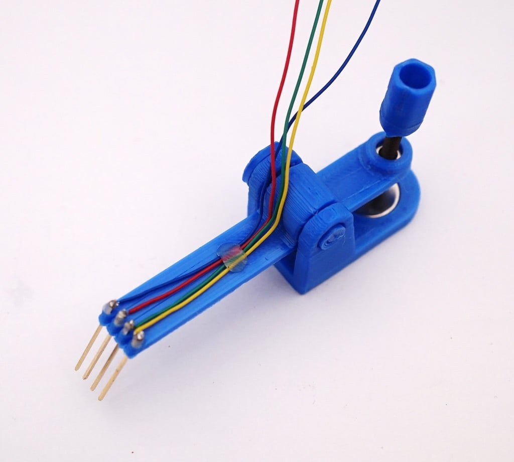 Die Sonde ist außerdem so konzipiert, dass eine präzise Installation möglich ist. Dies kann durch Erhitzen des Kunststoffs des Arms um die Spitzen herum erreicht werden, um sicherzustellen, dass sie während des Gebrauchs an Ort und Stelle bleiben. Es wird empfohlen, eine M3-Schraube aus Eisen zu verwenden, um maximale Funktionalität und Stabilität zu gewährleisten, wenn die Sonde nicht verwendet wird.